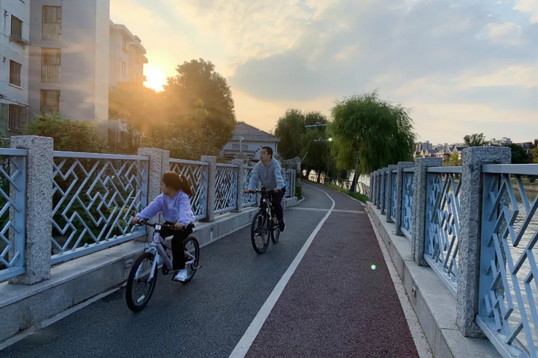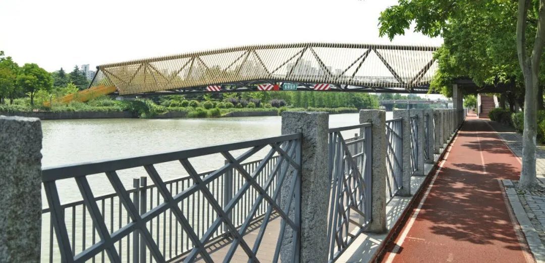 沿着西大盈港“内环”骑行,经过浩泽驿后,继续向前骑行,右拐前行不久,即可抵达出发地点:胡渡浜人行桥~