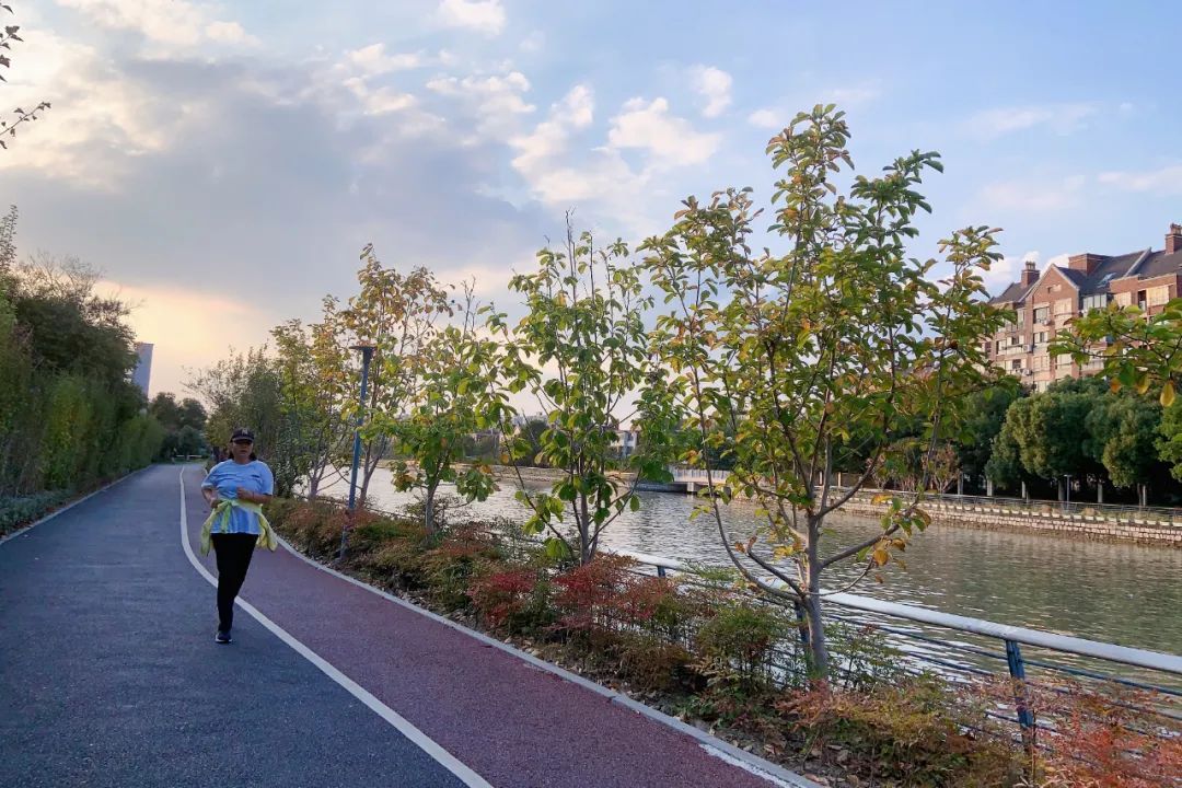 环城水系油墩港段沿线的植物,亦很有“个性”。滨水种植有许多水果树,譬如枇杷树、杏树、桃树等,夏日正是青杏、小桃结果之际,看起来很讨人喜欢。