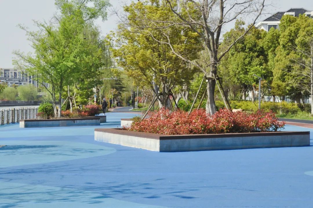 经过盈海驿旁的极限运动场、汇浦广场后,一路畅快前行,即可抵达秋湾广场、淞水广场、新芽广场、浩泽驿等。