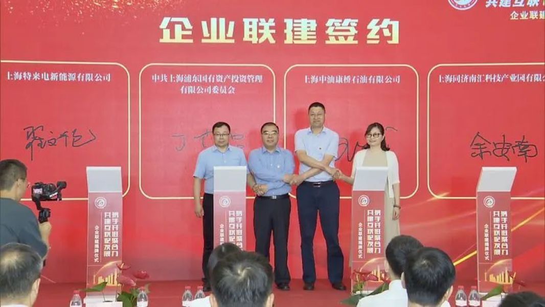 活动现场,国资公司党委与上海特来电新能源有限公司、上海中油康桥石油有限公司、上海同济南汇科技产业园有限公司共同签约。