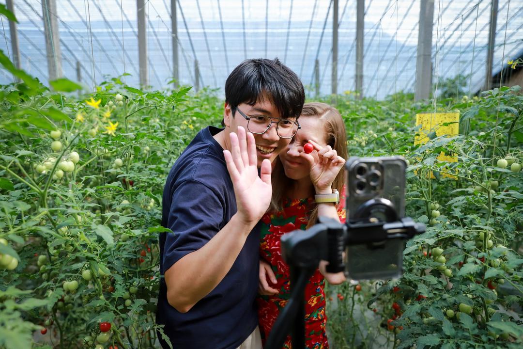 范宸恺和玛利亚在婶婶家的大棚,开直播推广西红柿。