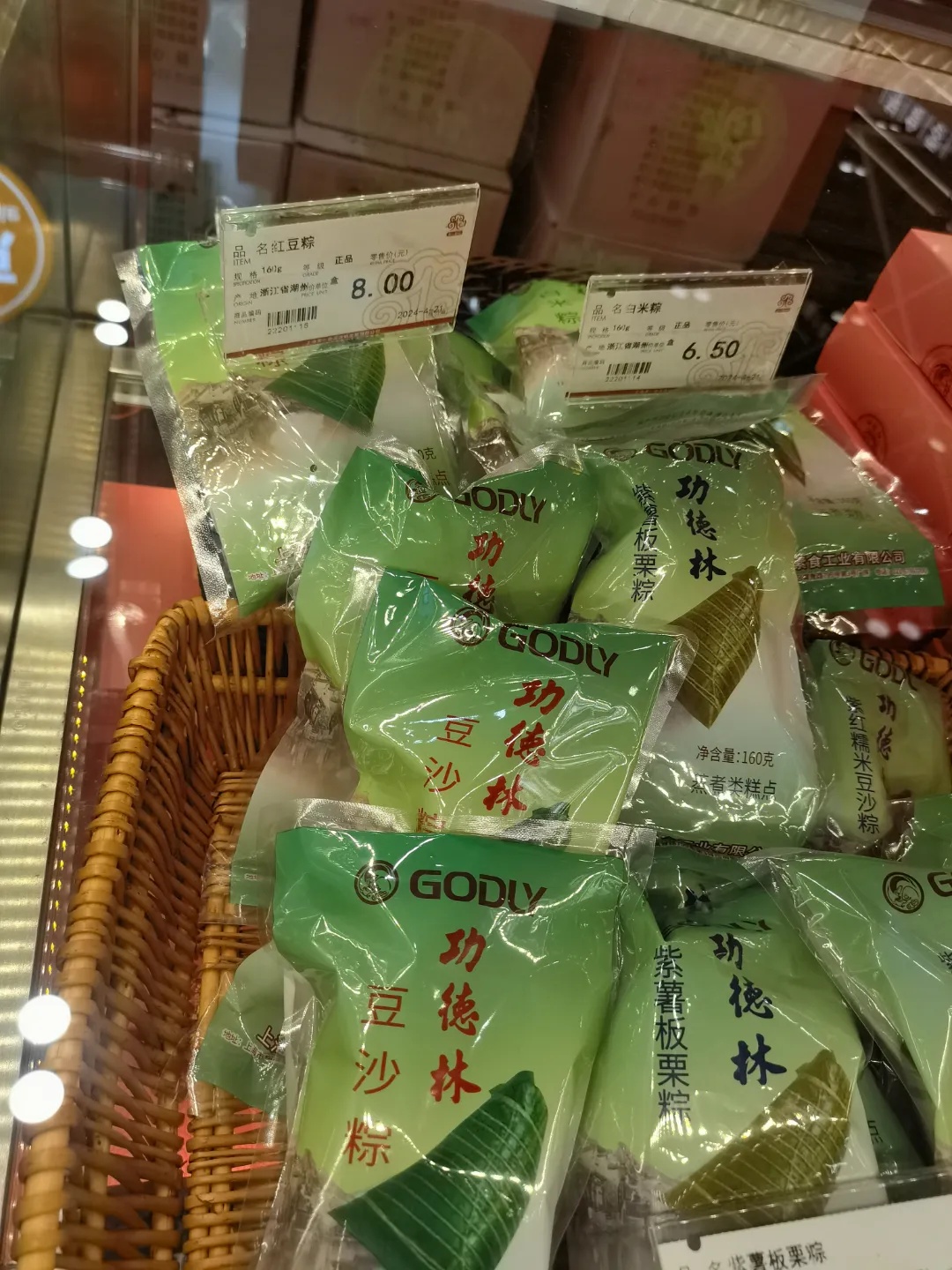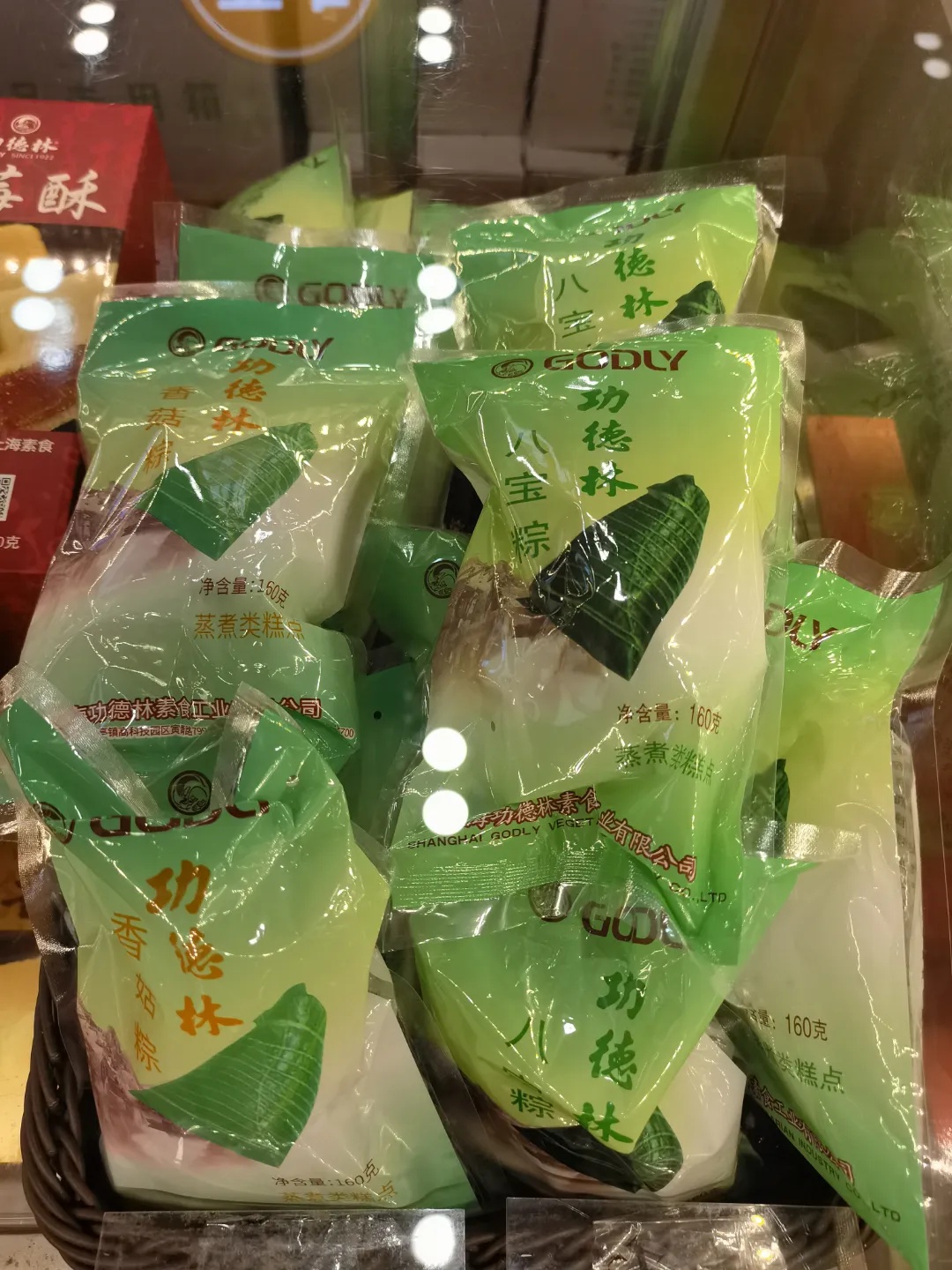 功德林的素食十分有名,他们家的粽子也有各种素馅,紫薯板栗棕、香菇棕、白米棕等。