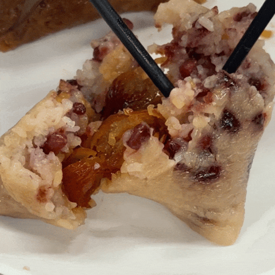 蜜枣赤豆粽,红豆混着糯米口感清甜~粽子里有两颗大蜜枣