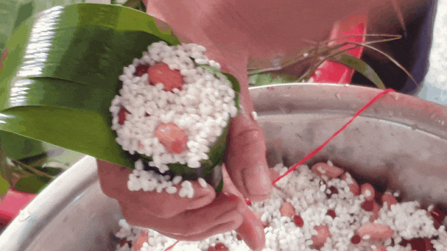 崇明人过端午, 绝对少不了粽子的陪伴。 粽叶的清香融入到糯米中, 吃一口, 还能尝到丰富的馅料。 小时候, 最好奇的就是 外婆这次送来的 是什么馅的粽子。 今天 就带大家来看看, 一个甜粽子, 是如何诞生的? 材料:粽叶、红枣、红豆、糯米 做法 1.清洗、浸泡食材 2.将糯米、红枣,红豆、花生滤水,搅拌均匀后备用 3.取4片左右的粽叶,剪去叶片多余的部分 4.将粽叶浸泡在清水中,使叶片粘合在一起 5.先将粽叶卷成漏斗形状 6.加入粽子内馅并用力压实 7.用剩余的粽叶,紧紧包裹起来 8.再覆盖一层粽叶,防止馅料漏出 9.用棉线捆紧粽子 10.放入沸水中蒸煮3、4小时,再关火焖煮至第二天 11.粽子煮熟后可以冷冻保存,想吃的时候解冻煮熟,剥开粽叶即可食用 完成 快来跟着大厨一起动手试试吧~ 如果您有拿手菜,欢迎报名参加“大厨教你学做菜”栏目,您可以在微信后台留下您的姓名、联系方式以及拿手菜,入选后小编将与您联系,等待您的报名! 记者:顾笑怡 编辑:焦倩倩