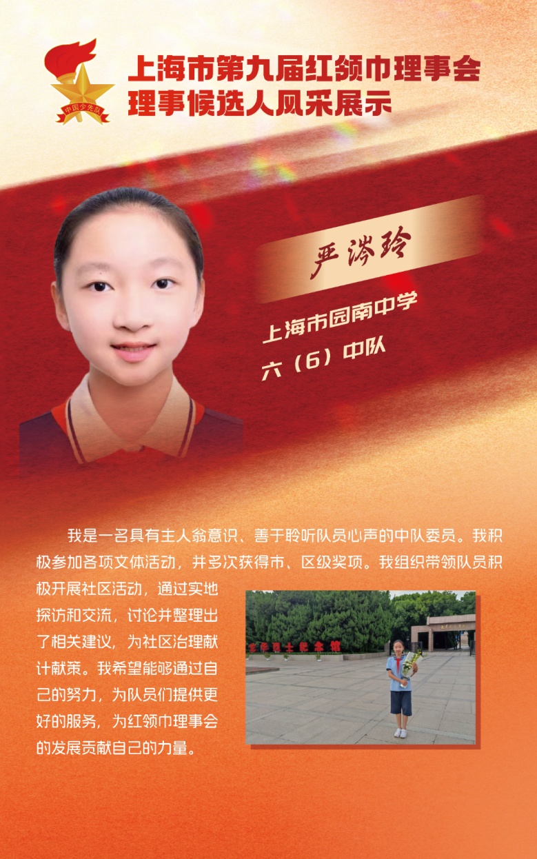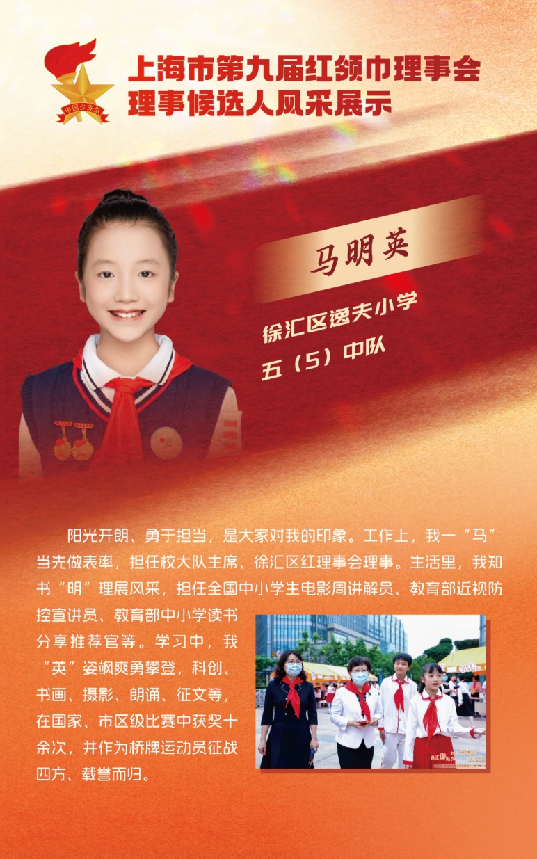上海市园南中学严涔玲、上海市徐汇区逸夫小学马明英、华东理工大学附属小学傅一峻,当选上海市第九届红领巾理事会新任理事。