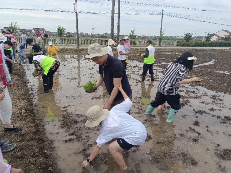 在工作人员的带领下,大家来到田边,小朋友们全副武装,有的孩子很期待插秧体验,撸起裤脚管就下地,也有的孩子不敢用手摸泥巴,或是怕弄脏衣服裤子,不愿意尝试,但在爸爸妈妈的鼓励下、在农民伯伯的指导下,他们最后都陆续走到田间,亲手插下一株株绿色的秧苗。这个过程不仅锻炼了孩子们的学习能力和动手能力,也让他们更加深刻地理解"谁知盘中餐,粒粒皆辛苦"的真正含义。