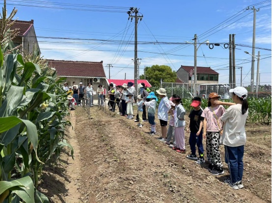 家长和孩子乘坐观光车来到了农民伯伯的菜园,玉米、茄子、西红柿……这些平日里农村常见的蔬菜,在这里变成了生动的教学工具。出身本村的志愿者张老师耐心地给小朋友们讲解有关这些农作物的有趣知识,通过亲手触摸和观察,孩子们更好地记住这些农作物的名字和特点,对农村的喜爱也更多了一些。