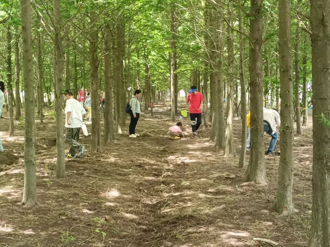 认识完田间蔬菜,小朋友们又来到了一片绿色森林,大家手提小篮子,手脑并用、全神贯注在林中寻找“宝物”——工作人员提前藏好的鸡蛋,他们有的刨,有的挖,发现“宝藏”的欢呼雀跃,没有发现“宝藏”的小朋友也不哭闹,他们或弯腰,或抬头,全力搜寻,“看,树上有个鸟窝,里面有‘蛋’”,一位小朋友惊喜地说道。活动很好地培养了孩子的观察能力和动手能力,这不仅是一次充满惊喜的寻宝活动,更是一场考验耐心的眼力比拼。