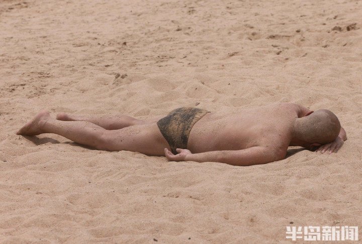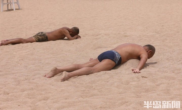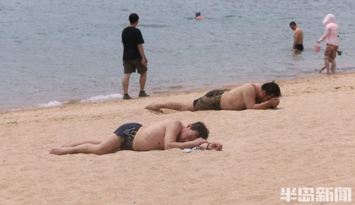 每年夏季,一浴沙滩上的“巧克力大爷”都十分抢眼,黝黑的皮肤、健壮的体魄以及出了名的“热心肠”,已经成为浴场上的一道风景线。