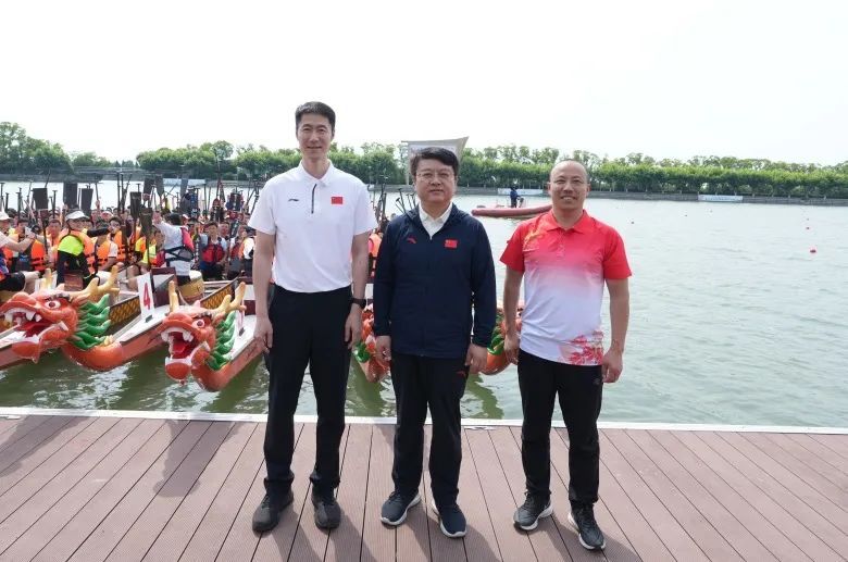 市体育局党组书记、局长徐彬,市竞技体育训练管理中心主任王励勤等为参加决赛的龙舟点睛