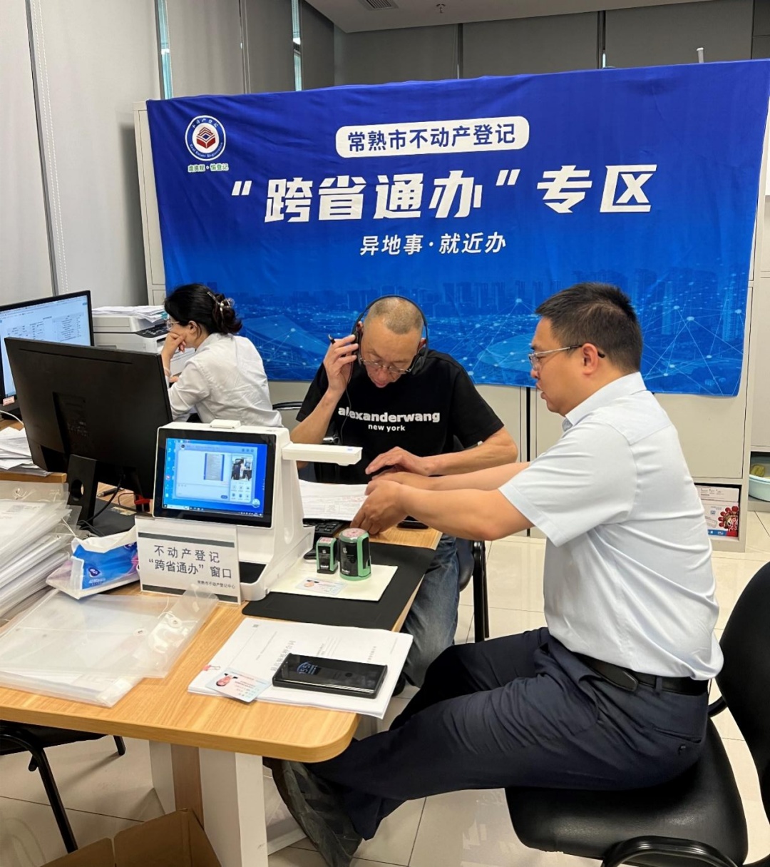 为更好地满足申请人的办事需求,嘉定确权登记中心加快速度,抵押注销完成即刻通过“云端窗口”办理不动产抵押登记业务。办理中,嘉定与常熟登记中心工作人员紧密配合,通过异地发起、属地协同的模式,依托“长三角一网通办虚拟窗口”完成身份读取、人脸识别等程序,顺利办理跨省通办不动产抵押登记业务。