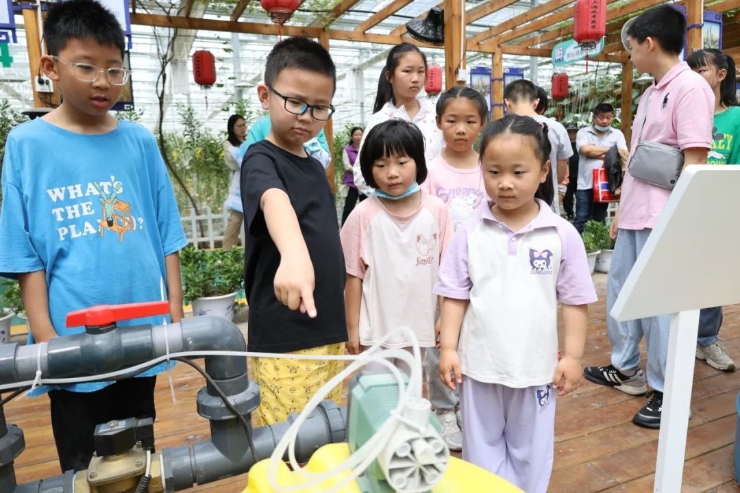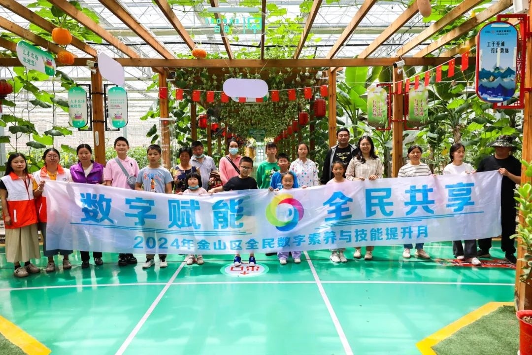 随时监测温度、湿度和光照等数据变化,能进行自动控温、喷灌等操作……日前,金山区提升全民数字素养与技能系列活动之枫泾镇“智慧农业 田间课堂”科普研学活动在九丰农博园举行,30多名学生和家长变身“新农人”,沉浸式体验“数字农业”。 在“九丰智慧农业大数据平台”的电子大屏前,参与活动的家长和小朋友们驻足听讲,温控、湿控、灌溉、机器人生产智能管理等模块让大家耳目一新。通过电子大屏,数万株番茄苗整齐划一,“美学+科技”焕发出农业新魅力。 现场,只见一片绿意盈盈的茄果类蔬菜在全环境恒温恒湿的智能温室里茁壮生长。“这座巨大的‘玻璃魔盒’有300吨的净化储存罐,通过水肥一体化设备,把配比好的营养液通过地下管网和喷滴灌设备输送到植物的根部,达到供水和供肥的目的。”在水肥一体化灌溉系统前,讲解员一边操作设备,一边介绍操作方法。 由于采用了全自动潮汐栽培设备、智能机器人设备和全自动喷淋设备,农博园内的智能化、工业化种植特色十足,让参与活动的学生周子俊颇为震撼,“还是第一次这么深入地了解智慧农业,和自己想象中的完全不一样,而且这么有科技感!” 整个过程中,大家一路观察,一路探索,仰望3米高的南瓜藤,研究上过太空的巨型南瓜,以及“喝”着红糖和豆粉发酵肥料长大的蔬菜,纷纷感叹科技力量的强大。 “通过现代智慧农业管理及现代农业技术的学习,让学生走出校门,深入全面了解现代农业的发展,感受数字技术的变革,畅想未来农业的发展,助力乡村振兴。”枫泾镇团委书记阚玥表示。 值得一提的是,活动当天同步开展了“数字赋能 全民共享”主题宣传活动。活动普及了数字城市、数字经济、网络安全、数据安全等知识,针对日常生活中可能出现的网络安全风险隐患做了提示与应对措施指导,引导大家树立数字治理理念和强化网络安全、数据安全保护能力。 据悉,金山区全民数字素养与技能提升月之枫泾镇活动将持续至6月底,期间将依托新时代文明实践站(点)等平台,持续推高全民数字素养和技能提升热潮,营造全社会广泛关注并积极参与的浓厚氛围,努力实现数字化发展成果全民共享。