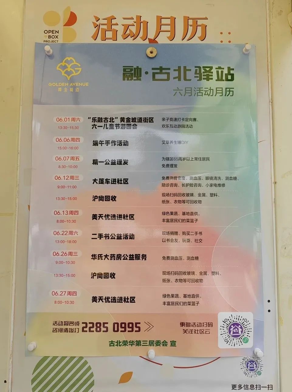 “居委会设置在人来人往的黄金城道,缩短了居民、商户来找我们办事的路程和时间,也便于我们居委倾听、了解各方主体的需求,并以需求导向形成服务清单,让居民一目了然地了解当月的活动和服务内容。”邵启颖介绍道。