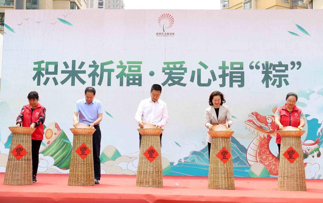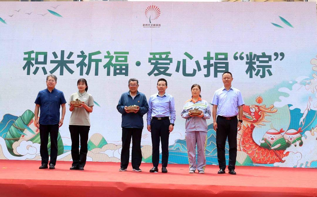 为弘扬互助向善的节日文化内涵,举行了“积米祈福•爱心捐粽”仪式。“一碗米”文明实践公益项目在市、区两级的精心指导下,用百家米联万家情的文明实践志愿服务日益成熟。在端午节来临之际,项目面向社会发布“一碗米”募集活动,通过“积米祈福”将募集而来的糯米、大米、红枣、花生等食材包制成粽子,捐赠给社会福利院、社区老党员、新业态群体等需要关爱关注的人群,以人人参与“文明实践我行动”的生动实践,展现出社会大家庭的温暖与团结。