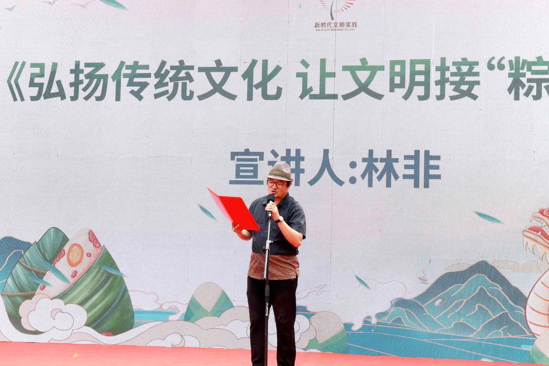 新时代文明实践志愿者林非带来主题宣讲《弘扬传统文化 让文明接“粽”而来》,从端午的由来和习俗、屈原的文化意义,以及他与端午的故事等方面,讲述端午深厚的历史底蕴与文化内涵;