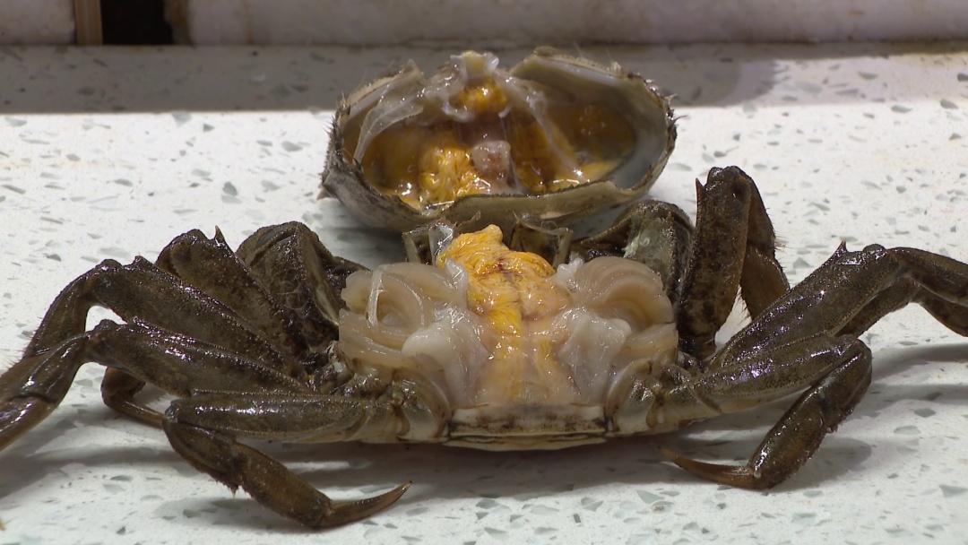 “六月黄”论只卖,分为12元一只和18元一只。吃法也有多种,一般搭配着其它食材一起烹制。摊主告诉记者,今年“六月黄”与往年价格差不多,比较稳定,像这个近二两,一两八的是12元一只,还有二两超过一点的18元一只。“现在的蟹黄很饱满的,六月黄就是壳薄、黄多。一般六月黄炒毛豆、炒年糕、面拖蟹、油酱毛蟹都能吃的,炒着吃是比较好吃的,不像大闸蟹是蒸着吃。”