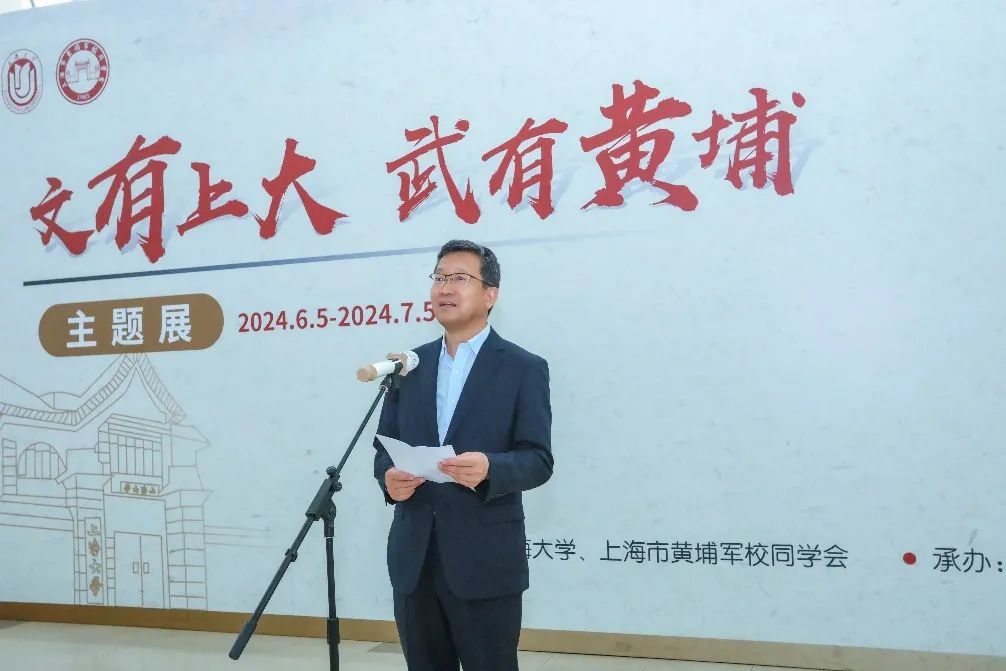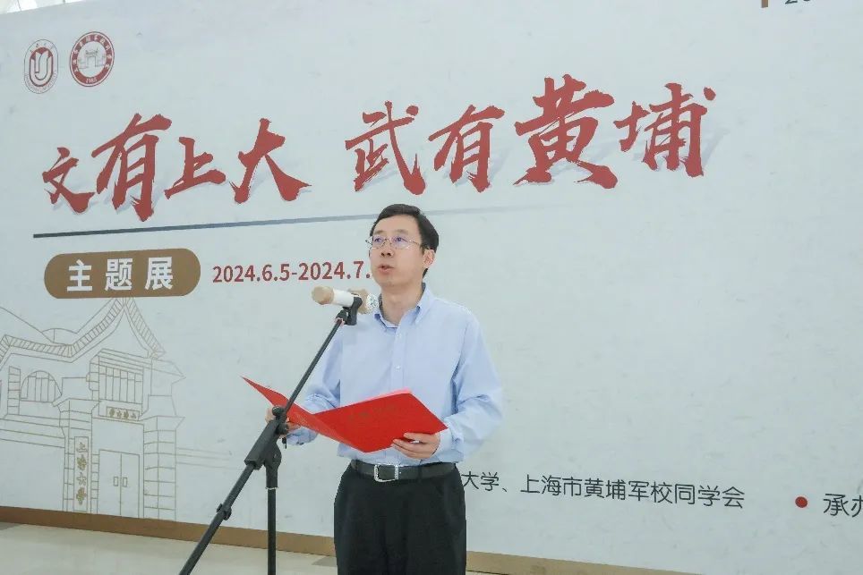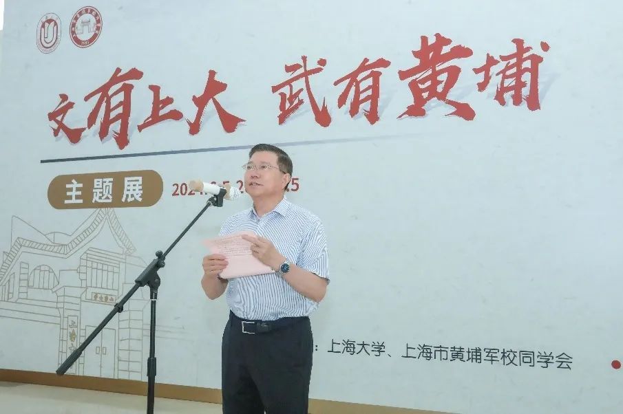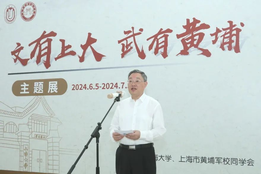 上海大学党委书记成旦红在致辞中表示,上海大学和黄埔军校是第一次国共合作的重要产物,更是中国共产党建立统一战线的重要成果。两校“你中有我,我中有你”,有着千丝万缕的关系,被称为“革命之左右手”,共同为反帝反军阀作出了彪炳史册的贡献。此次主题展对进一步弘扬爱国主义精神具有非常重要的现实意义。近年来,上海大学深入实施校史工程,对中国共产党早期革命史、民族奋斗史研究作出了重要贡献。成旦红表示,上海大学的发展离不开社会各界的关心和支持,离不开全校师生的共同努力。希望大家继续发扬革命精神,共同传承红色基因,携手为建设社会主义现代化强国、实现中华民族伟大复兴努力奋斗。随后,成旦红宣布展览开幕。