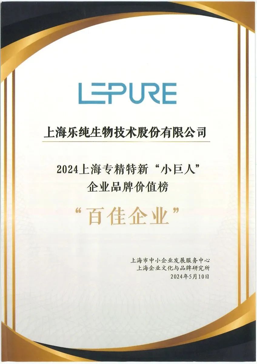 近日,第十届中国品牌经济(上海)论坛专场活动“上海专精特新品牌价值创新提升”主题论坛举办,会上公布了2024年上海专精特新“小巨人”企业品牌价值榜“百佳企业”名单,位于松江的国内生物制药一次性耗材龙头企业乐纯生物凭借其卓越的品牌价值和持续的创新能力,荣登榜单。
