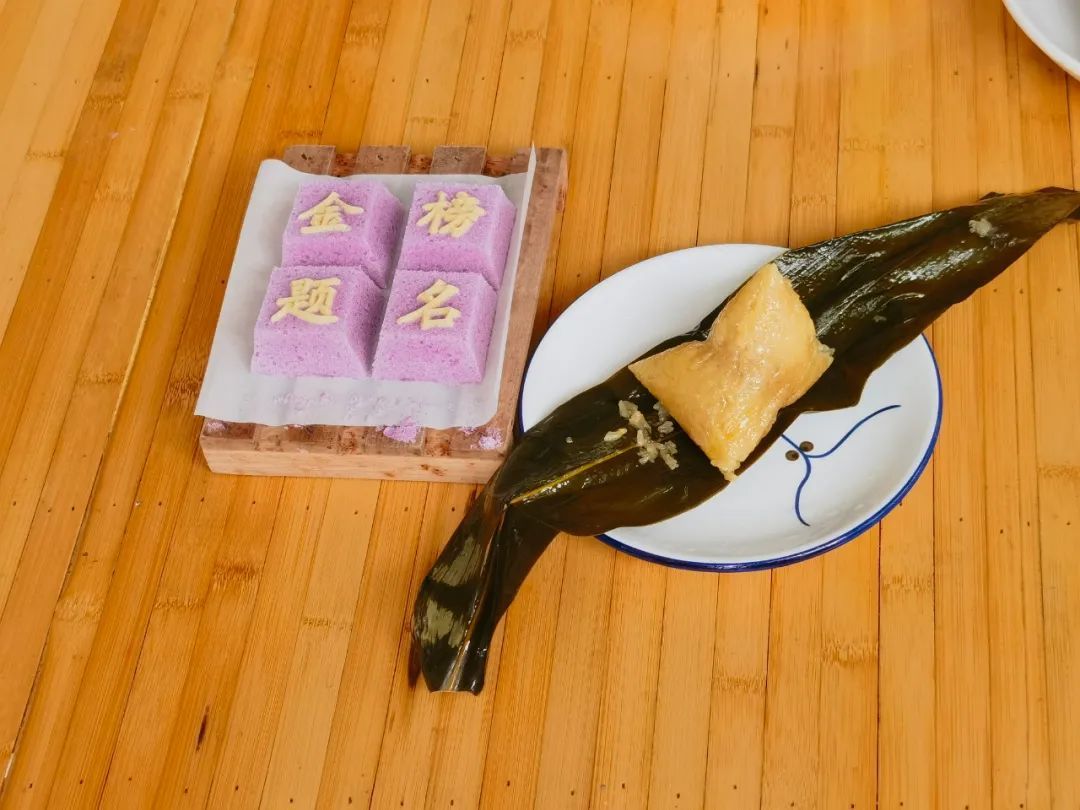 “题糕射粽说奇才,馈食春朝笑口开。”这首《糕粽诗》道出了考生吃糕和粽子寓意“高中”的习俗。今年,恰逢高考日期与端午节重合,为此,叶榭镇非物质文化遗产体验馆为高考考生定制了叶榭软糕“定胜版”系列磨具,并精心准备了包粽子材料。6月1日,20名高考考生家长通过做软糕、包粽子,祝愿莘莘学子能蟾宫折桂,金榜题名。