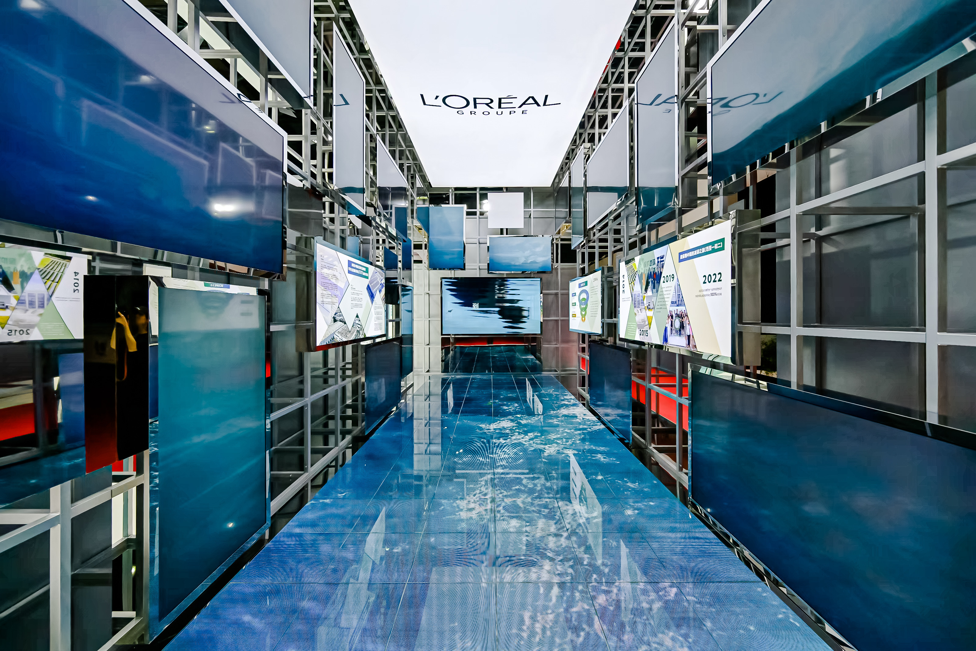 多年来,欧莱雅勇立潮头,制定了清晰而具体的可持续发展战略并将之一一落实,身体力行“为地球用心思”。步入其展示范围1与2的沉浸式艺术通道,可360度观看到欧莱雅多年来在减碳创新之路上的高光时刻。