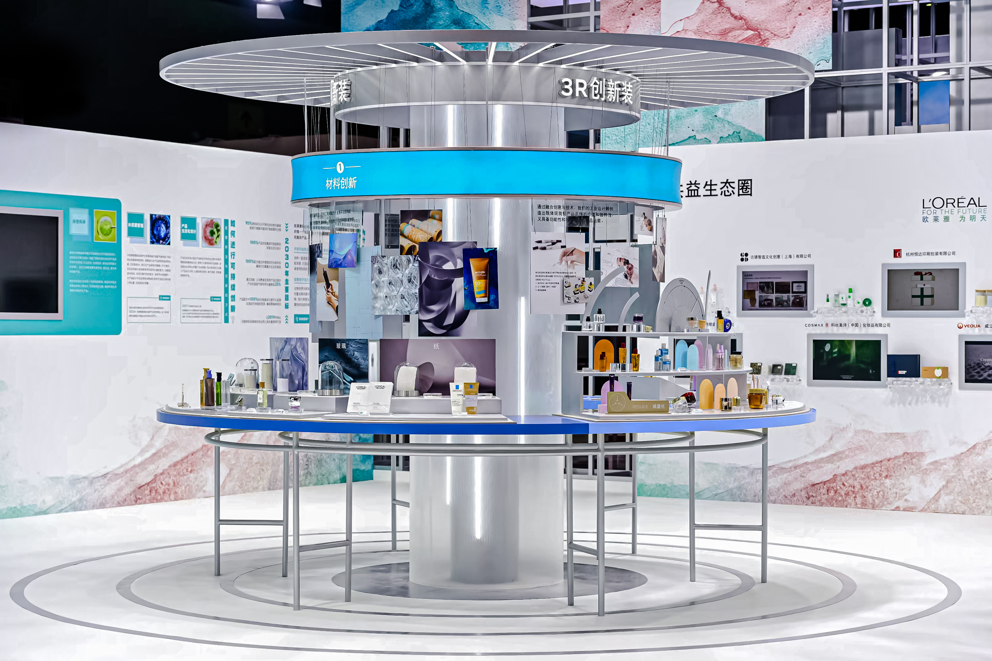除此之外,在展台范围3-上游区域,详细呈现了欧莱雅在推动行业减碳路径中的技术创新与实践典范,还首度向公众展示了以“5个设计步骤,3R (Replace, Reduce, Recycle) 设计杠杆”为特色的欧莱雅包装实验室的关键设计流程及可持续包装设计背后的故事。小到可再生材料的包装应用、替换装的使用,大到3D建模打印、质量测试,每一个微小的可持续包装应用的背后,都是欧莱雅在可持续技术领域不断革新的拳拳之心。