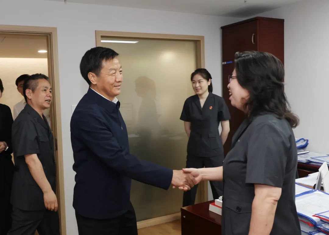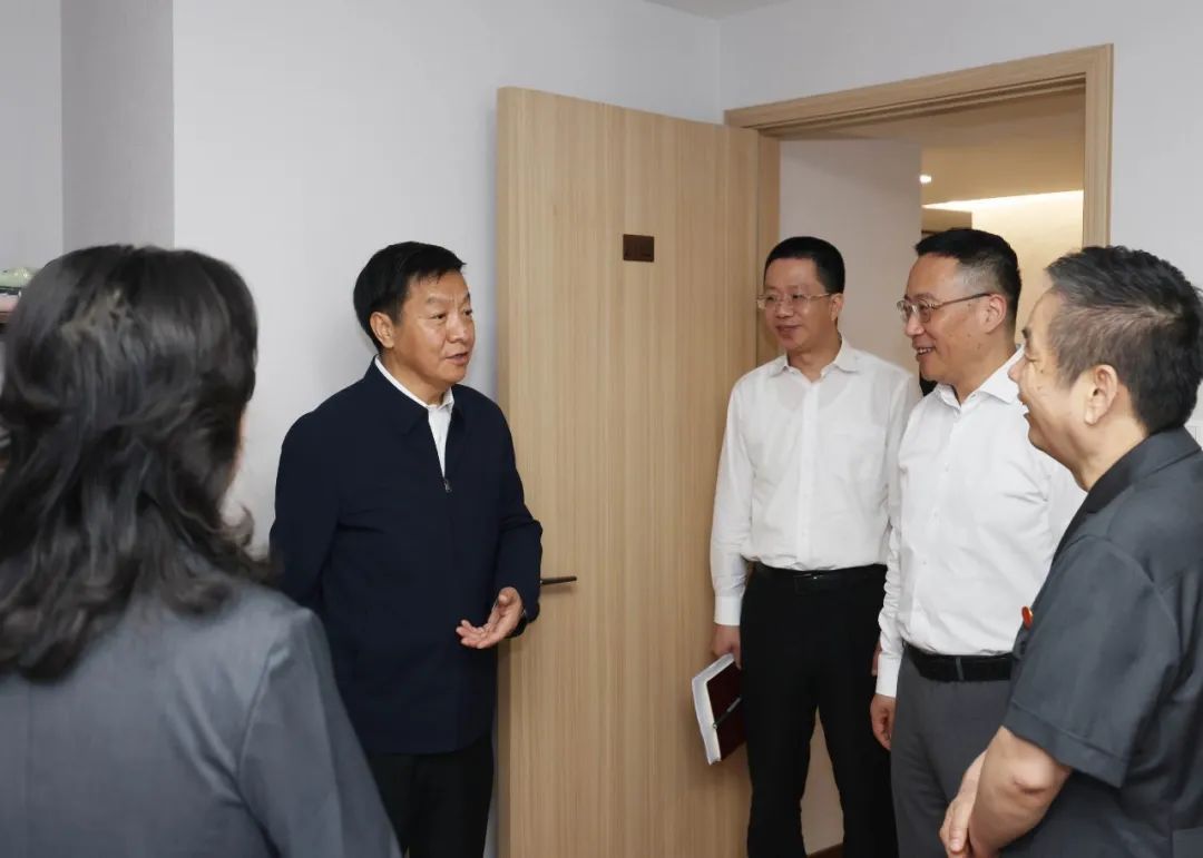走进审判大楼,贾宇一行到办公室慰问一线干警,在民事审判庭见到王蓓蕾法官时,贾宇亲切地说:“去年调研外滩城市更新巡回审判(调解)工作站时见到你,现在还去旧改基地调解纠纷吗?每周去几天?这块工作做得怎么样?”