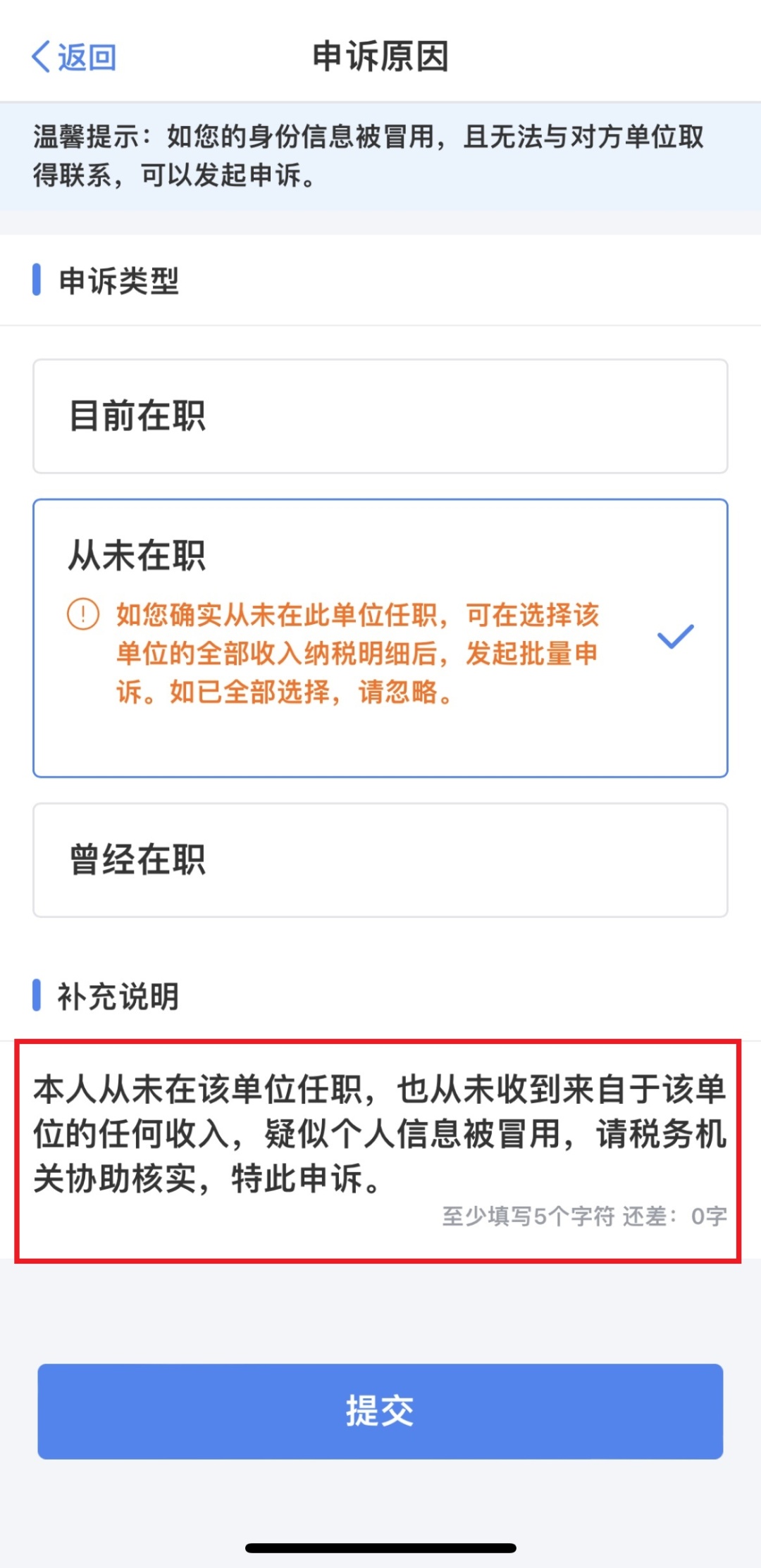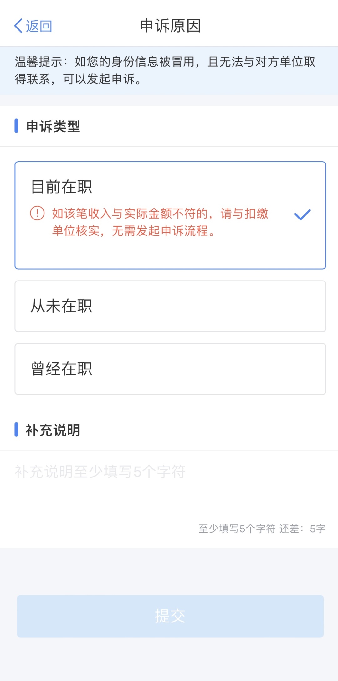 我收到了工资薪金,但是有一笔的收入和我的税前收入存在差异,我想点击申诉,却没有合适的申诉类型,这怎么处理?