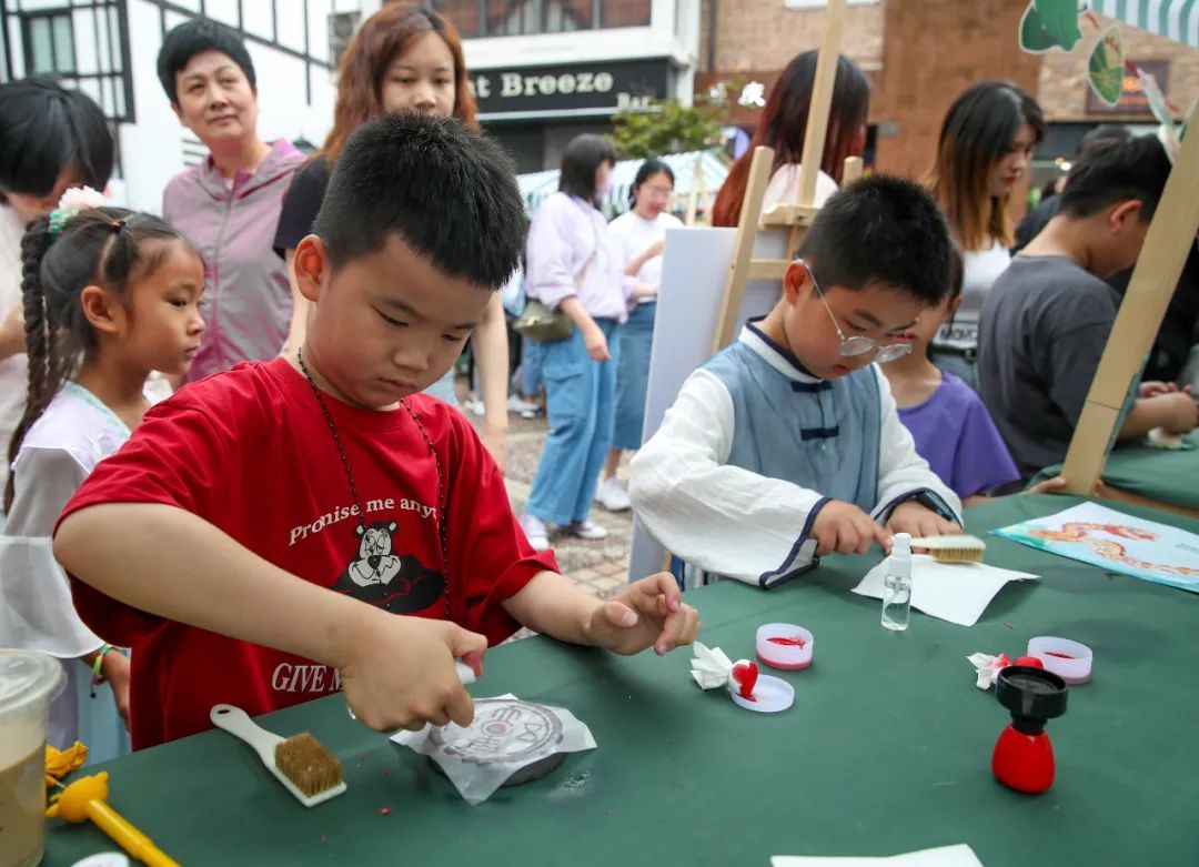 活动设置了丰富多彩的游戏内容,包括钓粽子、非遗投壶、非遗拓印、猜灯谜、书签DIY等。孩子们在体验丰富多彩的互动游戏同时,增加对传统端午节的认识,感受民俗文化的魅力。