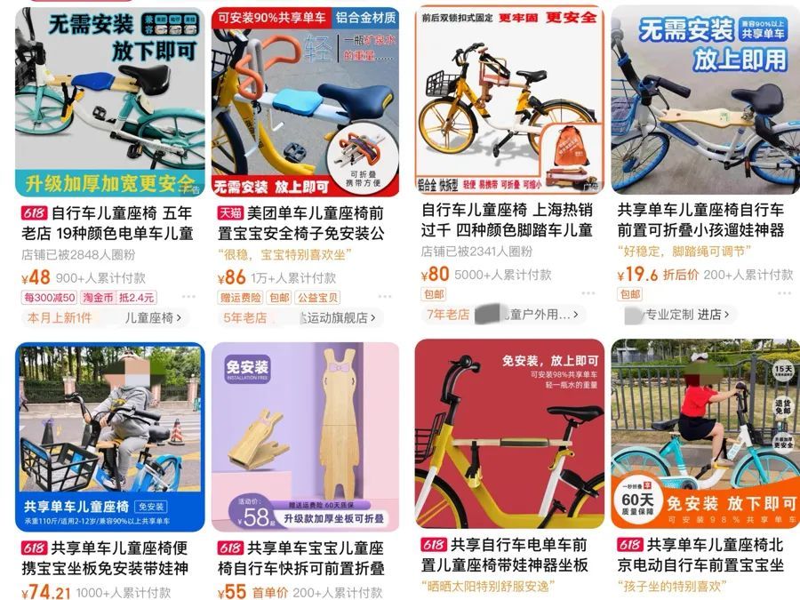 最近,“共享单车儿童座椅”登上热搜:电商平台上,几十元就能买一个用在共享单车上的“儿童座椅”,“无需安装,放上即用”。也有市民反映,在上海街头看到了“亲子共享单车”,车上有儿童座椅。