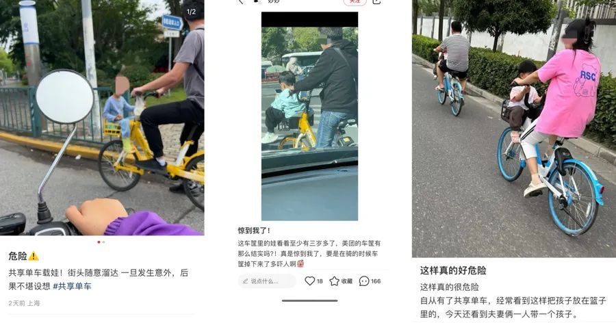 网友们拍摄的亲子共享单车(来源:小红书用户)