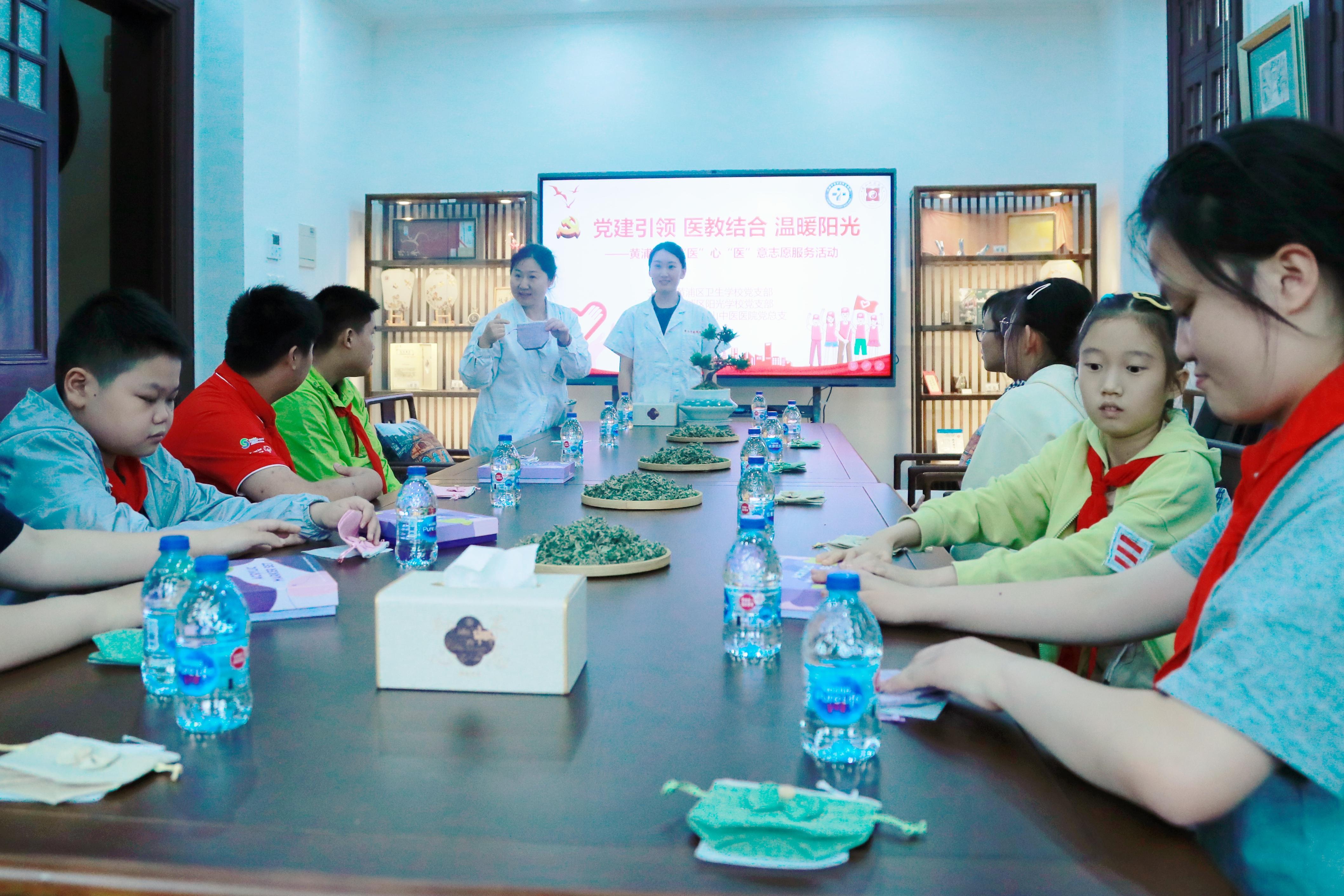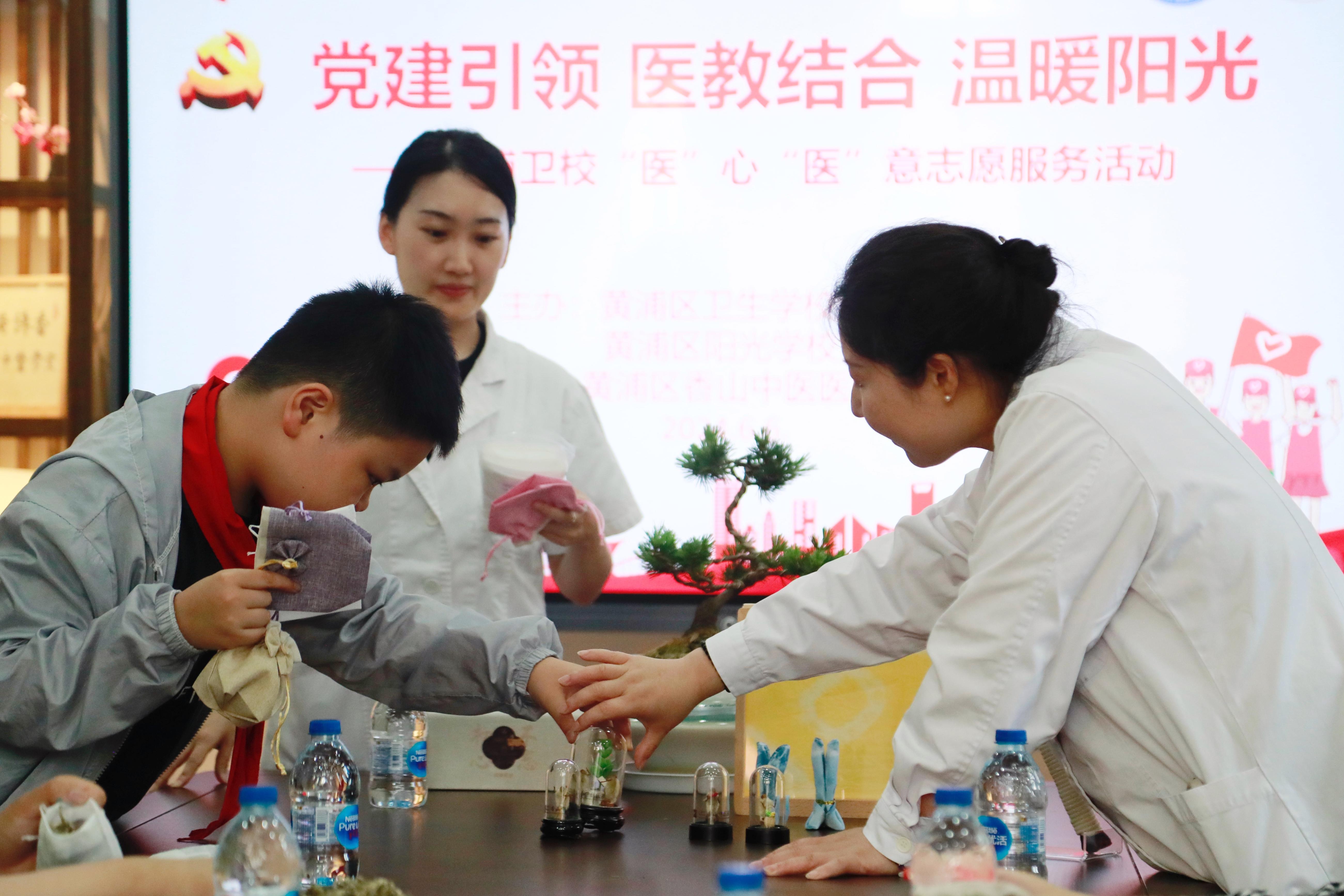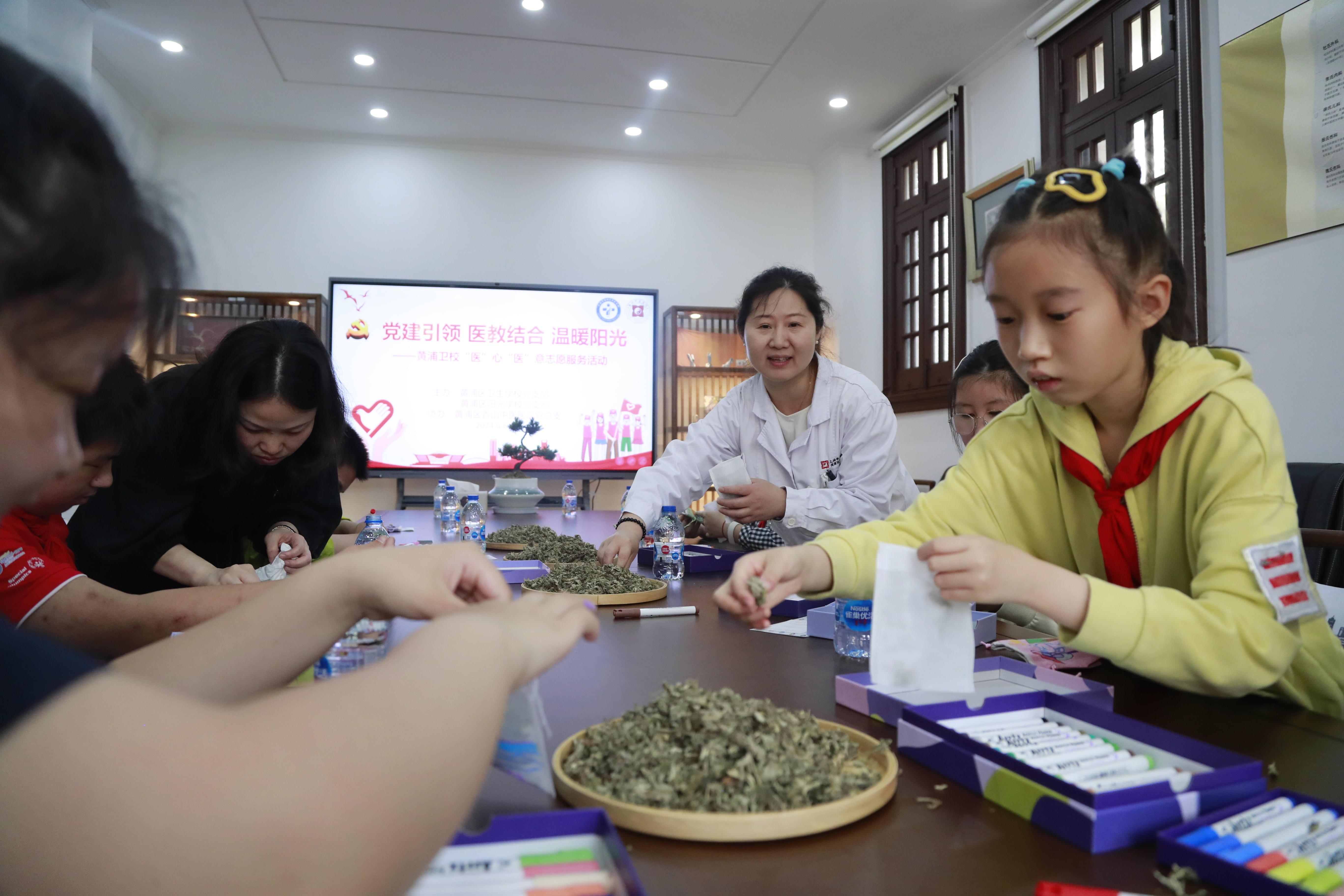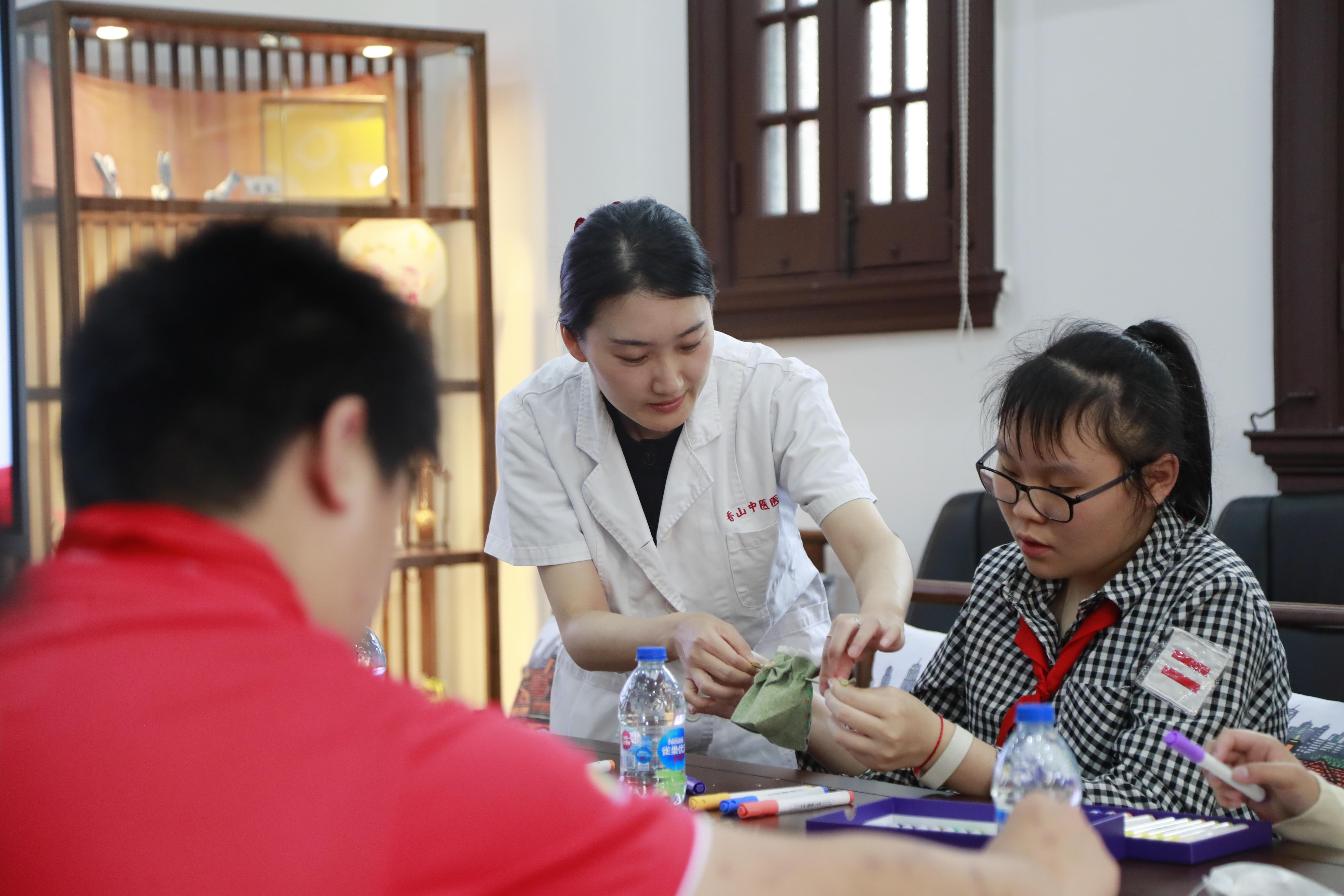 端午前夕,由黄浦区卫生学校、黄浦区阳光学校主办,黄浦区香山中医医院协办的“小小中医 党建引领 温暖阳光” “医”心“医”意志愿服务活动,在复兴中路510号里的袖珍中医药博物馆内开展。10多位来自黄浦区阳光学校的孩子,在这里“零距离”感受现代中医的传承与发展。