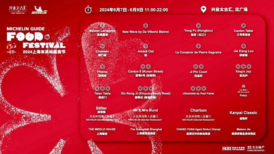 即日起至6月9日,兴业太古汇北广场吴江路化身星级美味街区,集结4家米其林三星餐厅、2家米其林二星餐厅和9家米其林一星餐厅,以及米其林指南入选餐厅、必比登推介餐厅和特邀餐厅。