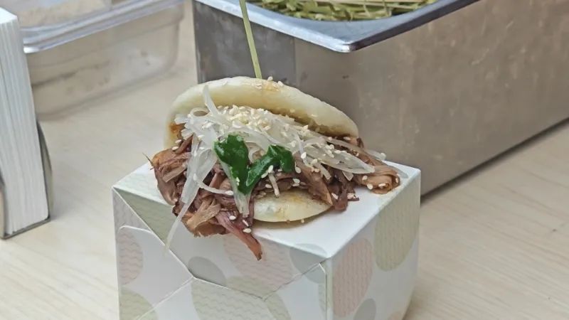 第一次参加米其林美食节,NEW WAVE by DA VITTORIO带来了意大利经典冰淇淋gelato和意大利南部的传统小吃,号称“Bao all’italiana”的Ciao“包子”,外形似肉夹馍,内里包裹了采用意大利南部传统烹饪手法制作的春笋、牛舌等食材,中西结合的创意美味受到食客欢迎。