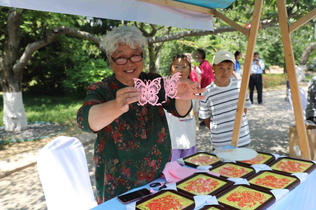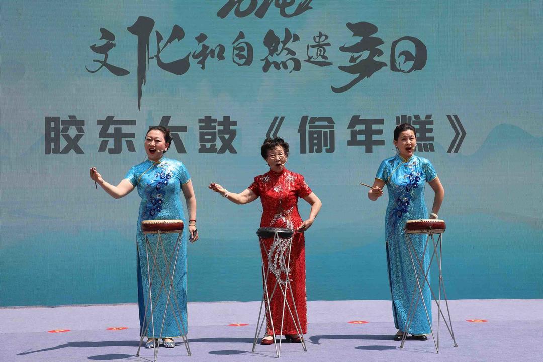 仪式上,胶州剪纸的时装走秀,胶东大鼓的传统唱段,以及胶州秧歌、吹打乐等的快闪节目,引得观众的掌声阵阵。