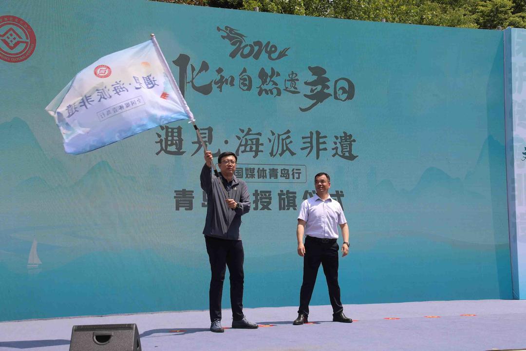 同时,作为今年“文化和自然遗产日”的特色活动,全国媒体“遇见•海派非遗”青岛行活动进行了授旗仪式,正式开启媒体记者非遗性活动。