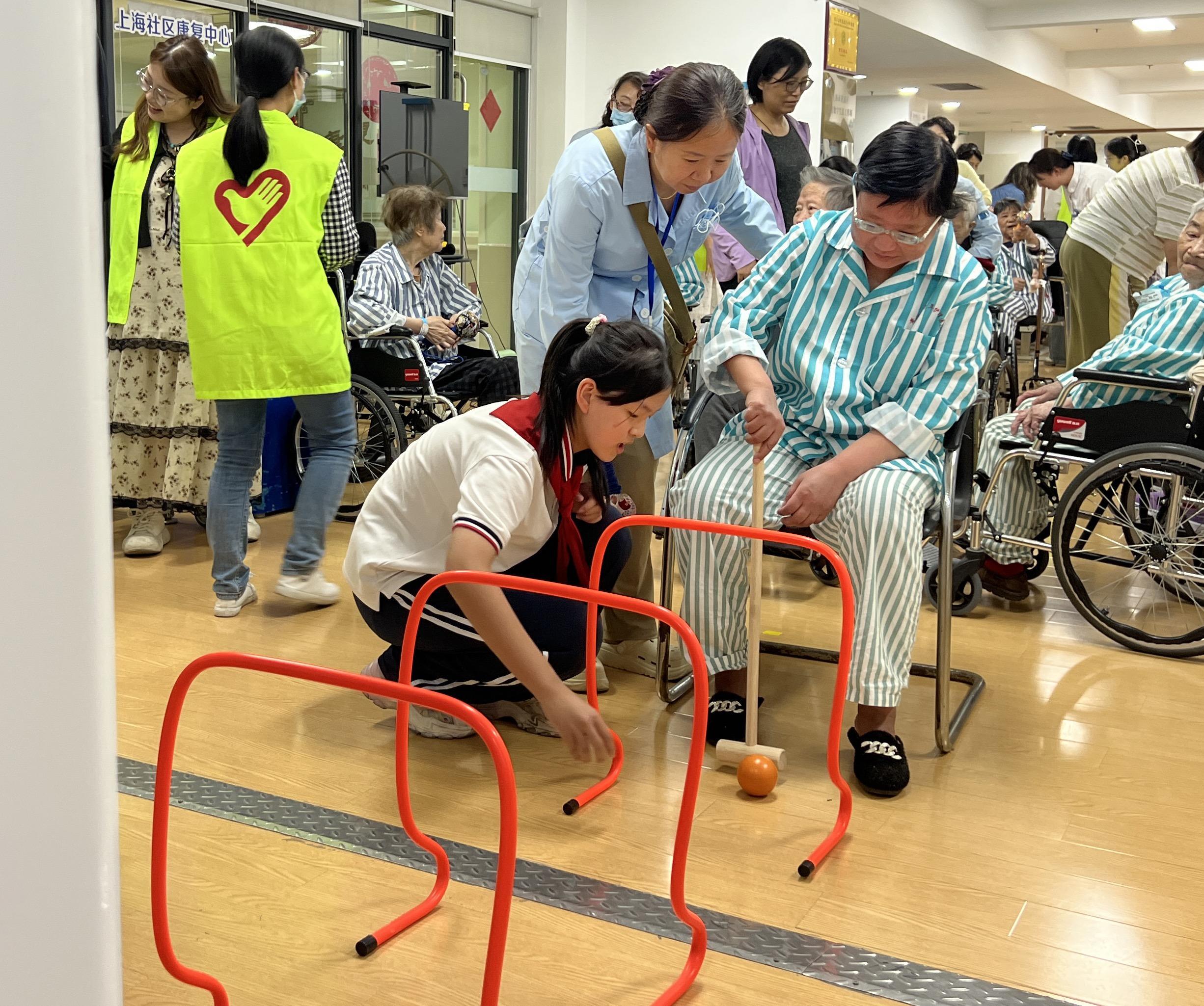 除了DIY项目外,医院还精心准备了一系列传统民俗游戏,如投壶、蹴鞠等,让老人们在游戏中感受传统文化的魅力。老人们积极参与游戏,相互竞争,现场气氛热烈而欢乐。