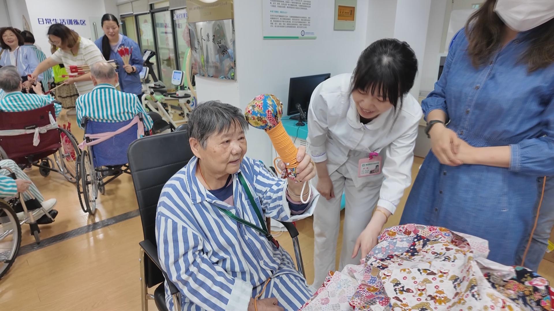 “我终于把这个养生锤做成功了,可以敲一敲穴位养生。通过这个游戏锻炼了自己的手部,觉得非常开心。”樊阿婆高兴得合不拢嘴。