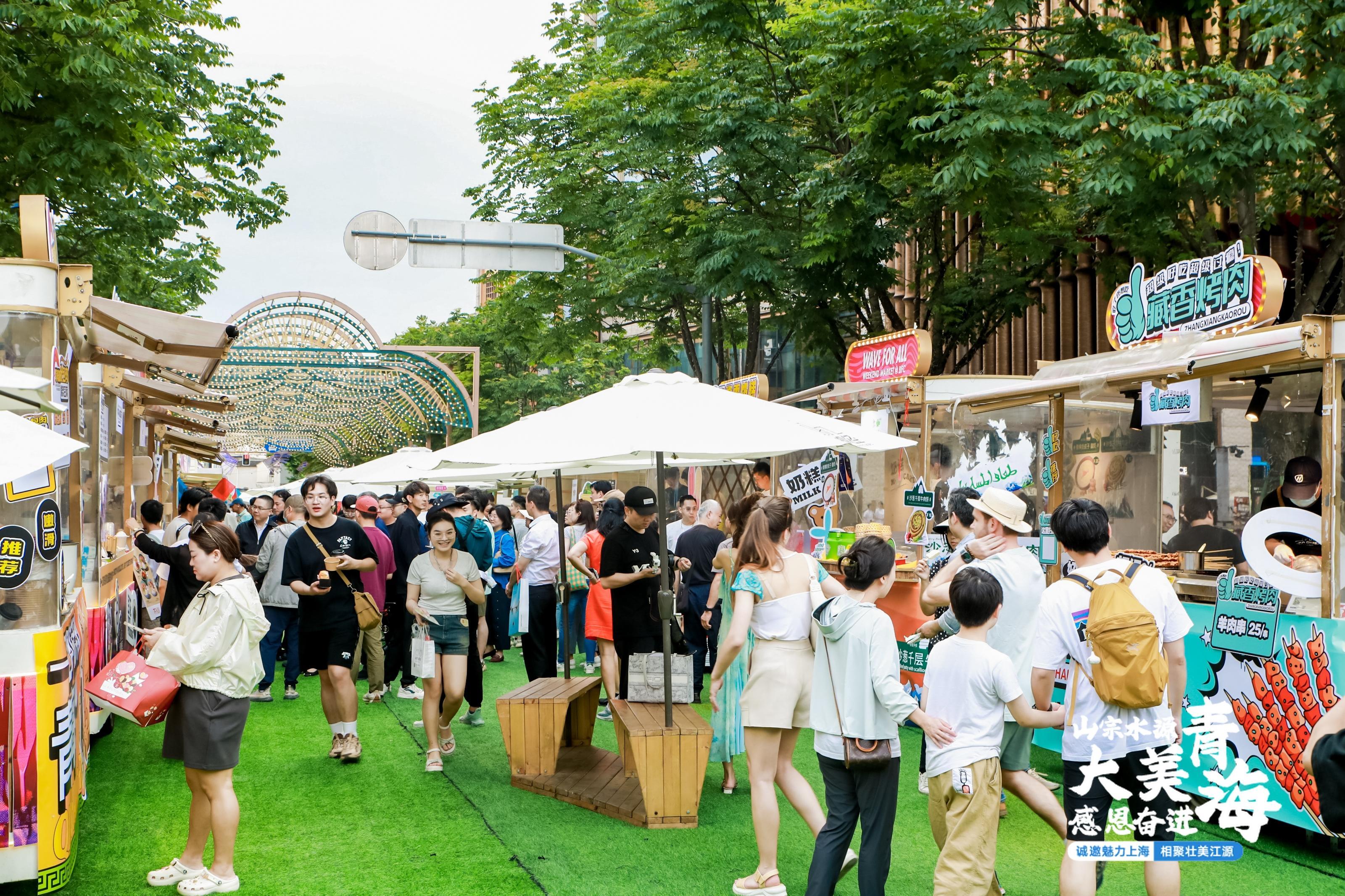 当日,为期三天(6月8日—6月10日)集合青海文旅及当地特色产品的主题市集——“黄河源集”正式开市。其中,既有食品类商品、又有文旅类咨询,吸引了不同爱好的路人驻足小憩;在商户的配备上,既有来自青海的商户,又有受上海市民欢迎的BFC枫泾市集常驻商户,让民族的和时尚的完美交融。