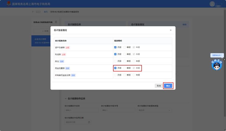 2.进入修改后,勾选“现金流量表”,点击【确定】完成修改。