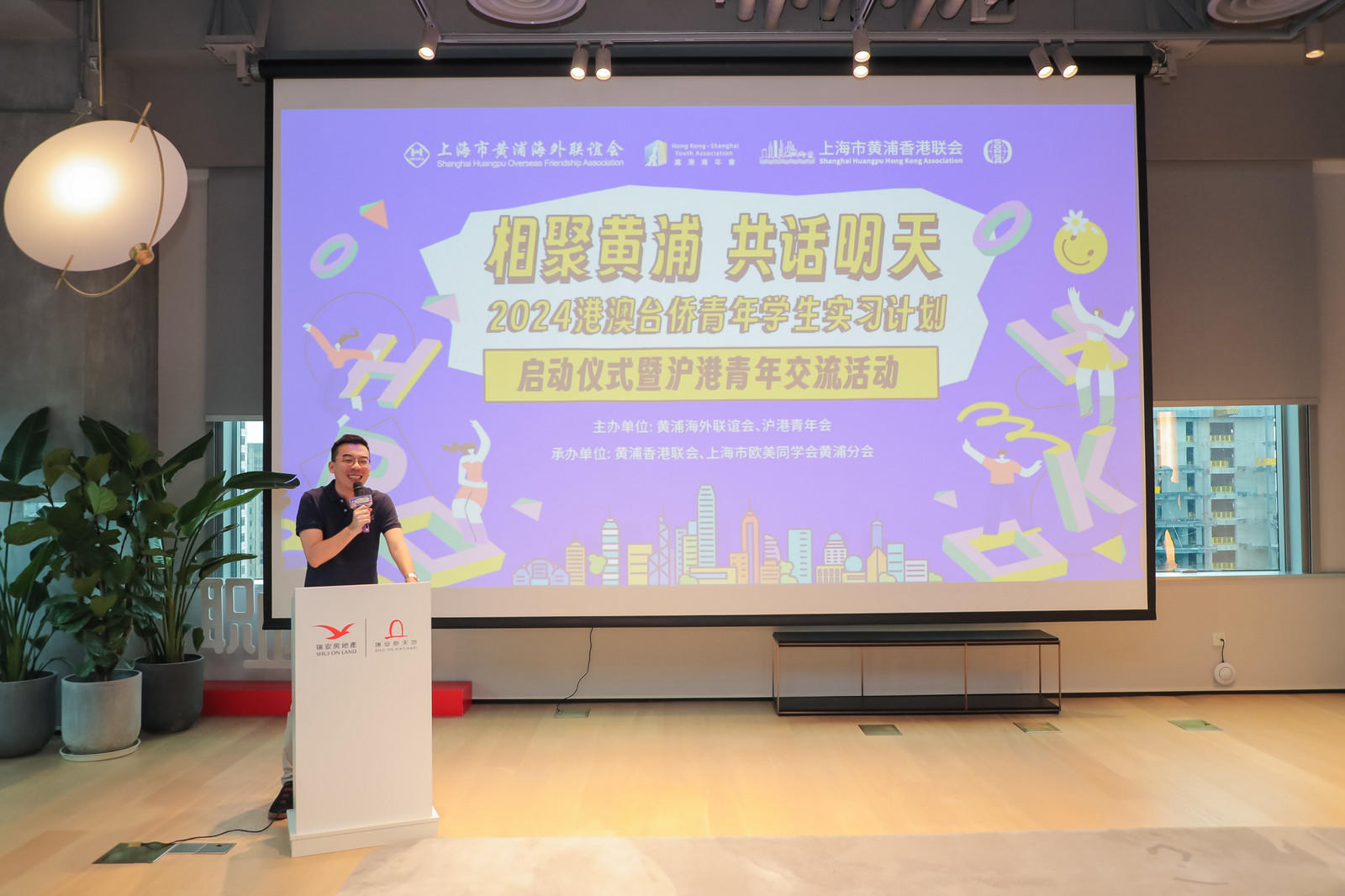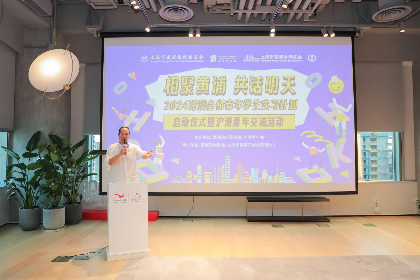 随后,沪港青年会主席杨永铿详细介绍了实习团的情况。他强调,今年已经是沪港同心实习计划的第15年,也是历来报名同学和企业最多的一年。“希望大家能够把握好这次的机会,通过亲身的体验和学习,更加深入了解黄浦、了解上海,深刻认识到我们祖国的伟大。”