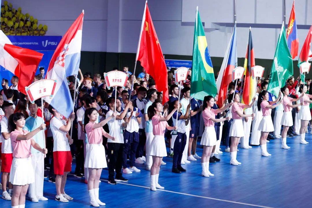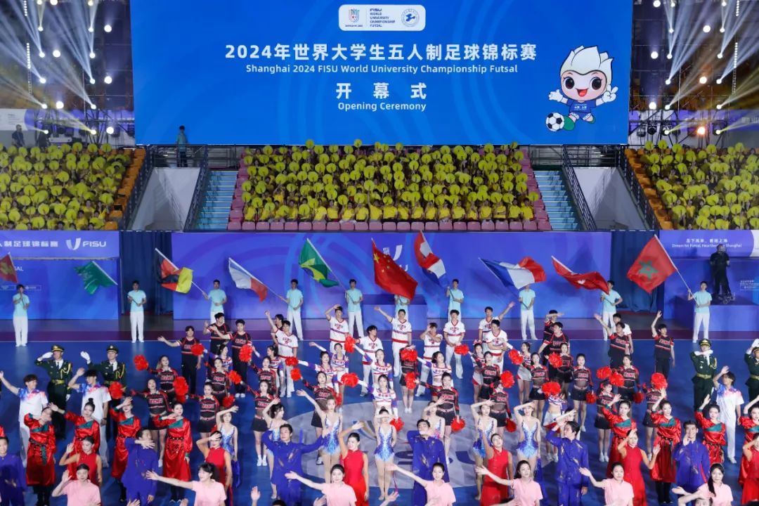 开幕式伊始,参赛国家和地区的运动员代表依次入场,观众席间欢呼声浪此起彼伏。伴随着雄壮的中华人民共和国国歌,五星红旗在赛场冉冉升起,上海市副市长解冬宣布2024年世界大学生五人制足球锦标赛开幕。为期7天的51场比赛将通过电视、网络等渠道为全国和全球观众展示世界大学生足球运动员的风采。