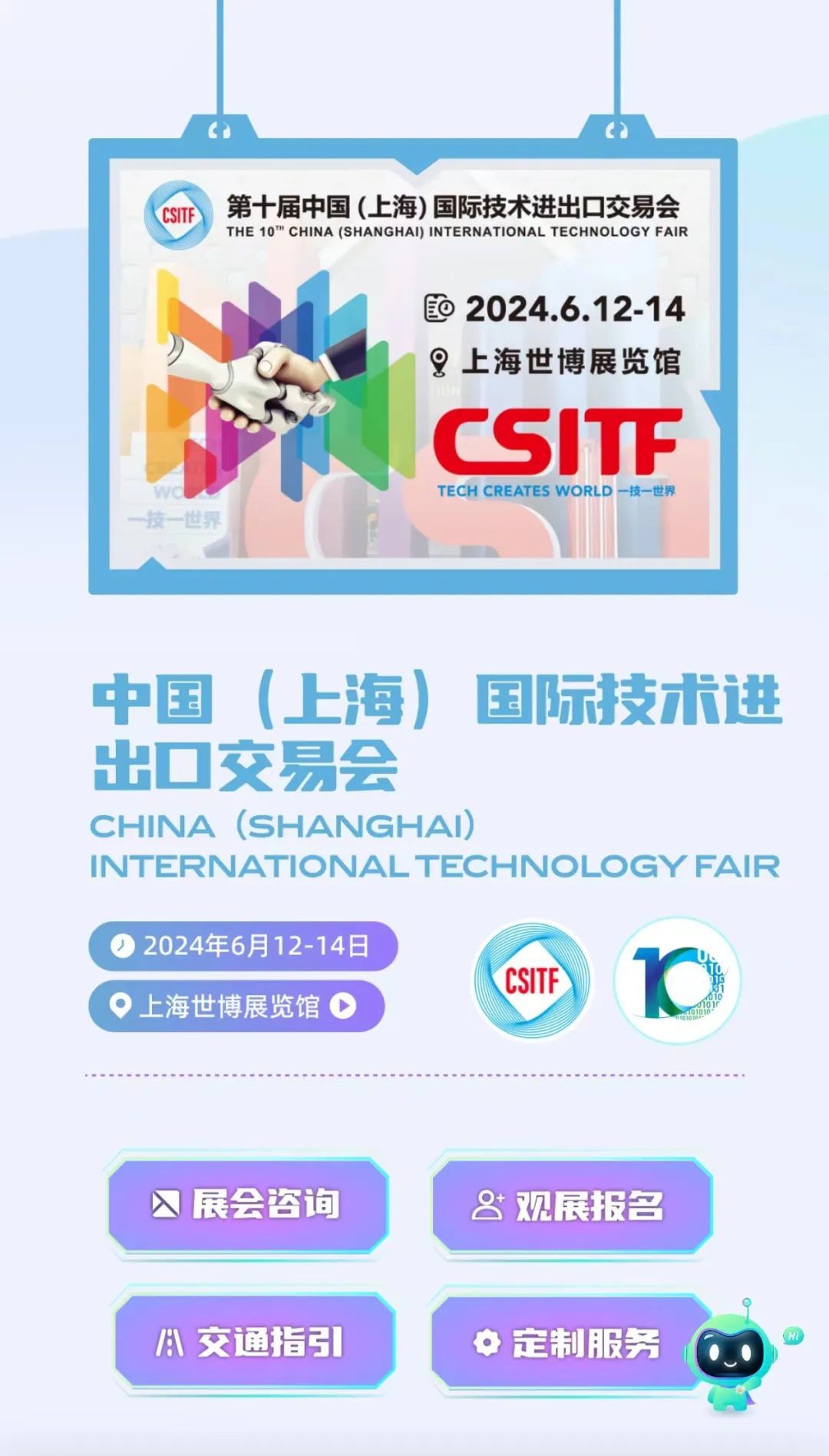 中国(上海)国际技术进出口交易会(以下简称"上交会")是国内首个集技术展示和交易服务为一体的国际性、综合性展会。自2013年创立以来已成功举办九届,在吸引全球企业发布创新成果、促进科技成果转移转化、建设国际创新合作网络等方面发挥了积极作用,已成为技术贸易领域加强合作、共谋发展的重要平台。