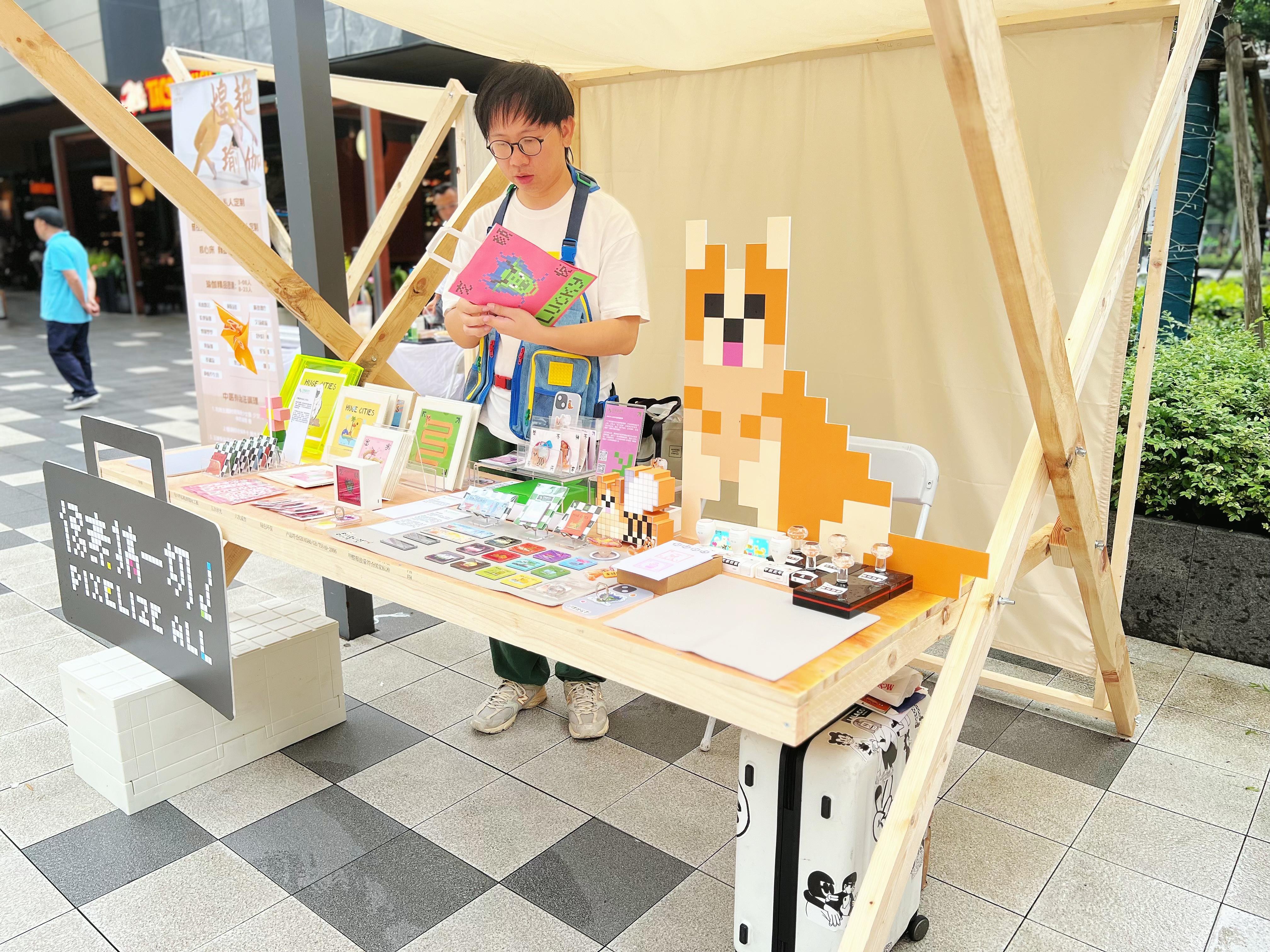 活动现场,把像素风玩出花的“日常建筑学”展位,让人一秒穿越回80年代,看到像素风的各类周边,儿时的游戏画面立马浮现在眼前。主理人、像素创作者黄沛在大学时主修建筑设计,加上又学过美术,便有了把建筑方格化的东西描绘出来的想法,“所有的网格在建筑里被用作画平面图,所以我从画网格线开始,慢慢地往像素风靠,当然儿时游戏画面里的像素记忆也时刻影响着我。”黄沛道出了创作初衷。