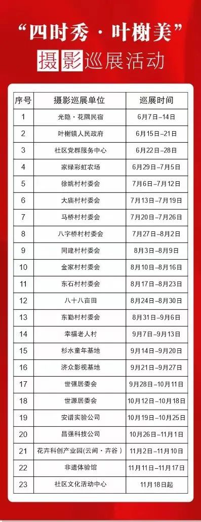 接下来,摄影展还将在镇政府机关、村居社区、企事业单位,以及主要旅游景点共23处进行巡展。每个点位各展出一周,让更多市民感受和了解叶榭的美丽风光和乡村振兴成果。
