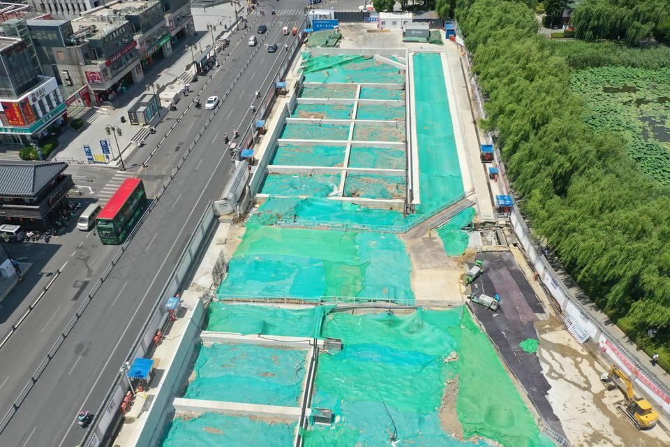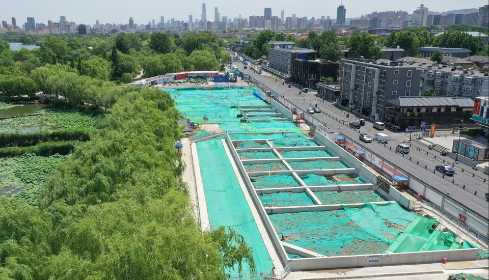 而大明湖西南门的大明湖站工地则十分安静。前段时间十分繁忙的工地上,众多施工机械已经撤离,工地覆盖了防尘网,车站施工告一段落。