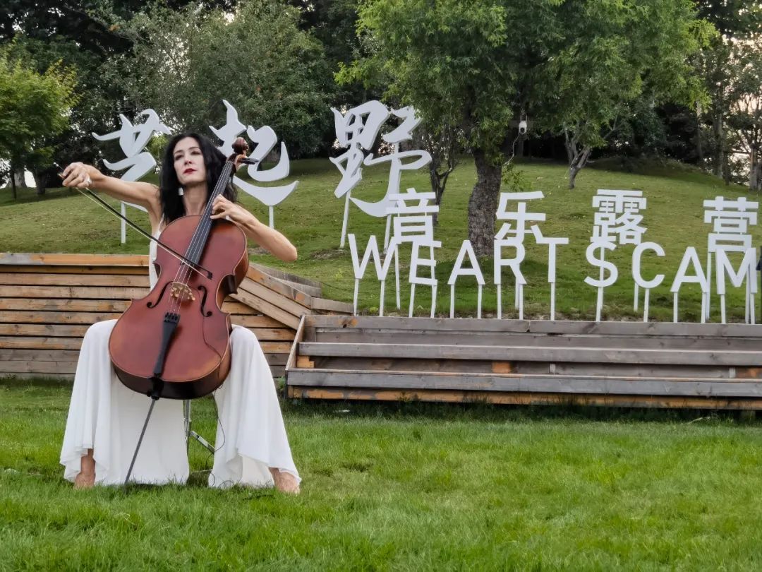 时间很快来到18时,太阳落下只剩余晖,一位身着白色修身晚礼服的优雅女士抱着一把原木色的大提琴缓缓走到台前落座,她就是当天的主角安娜。“我们的音乐会时长大约40分钟,它将是一段舒服自然的疗愈过程,在这段时间,你可以躺着,可以闭着眼睛睡觉,也可以随意喝点东西,只要不发出声音影响身边的人就好。”主持人朴素的开场白更像是一段温馨提示,随即悠扬的曲子便从安娜的琴弦中流淌出来。