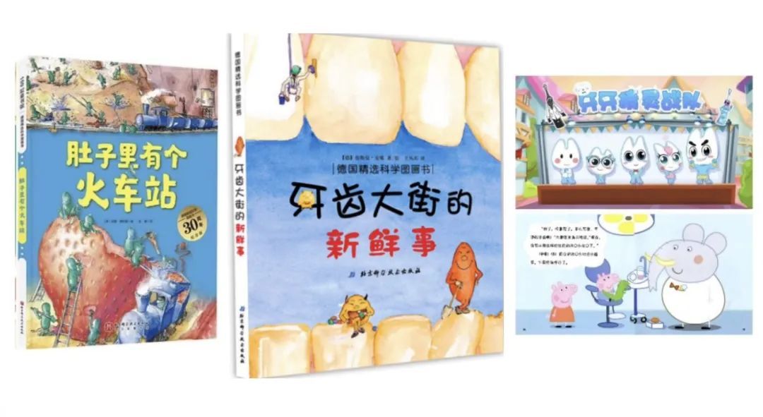 平时可以给孩子看看与看牙相关的绘本或视频,如《牙齿大街的新鲜事》《肚子里有个火车站》;动画片《小猪佩奇-看牙医》《牙牙精灵战队》等,让孩子了解到看牙并不可怕,而是为了消灭掉蛀牙里面的“小虫子”。角色互演与孩子模拟看牙医,模仿打麻药、补牙、漱口、拔牙等动作,借此告诉孩子一些看牙的过程,孩子对看牙的程序了解之后,也会减少因无知而感到的恐惧。