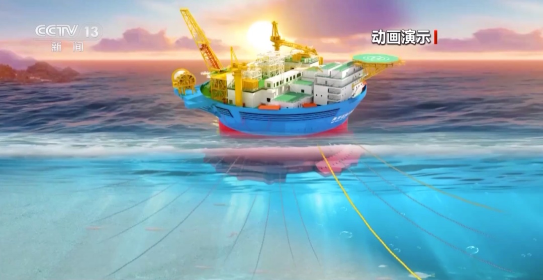 “海葵一号”所在海域水深300多米,风向多变、内波流频发。为确保在波涛汹涌的大海安稳扎根,项目在海底安装了由我国自主设计建造的12套深水吸力锚,并通过12条由“锚链+中水浮筒+聚酯缆”构成的系泊锚腿进行连接,像“拴马桩”一样将其牢牢固定在海面上,能够抵御百年一遇的恶劣海况。