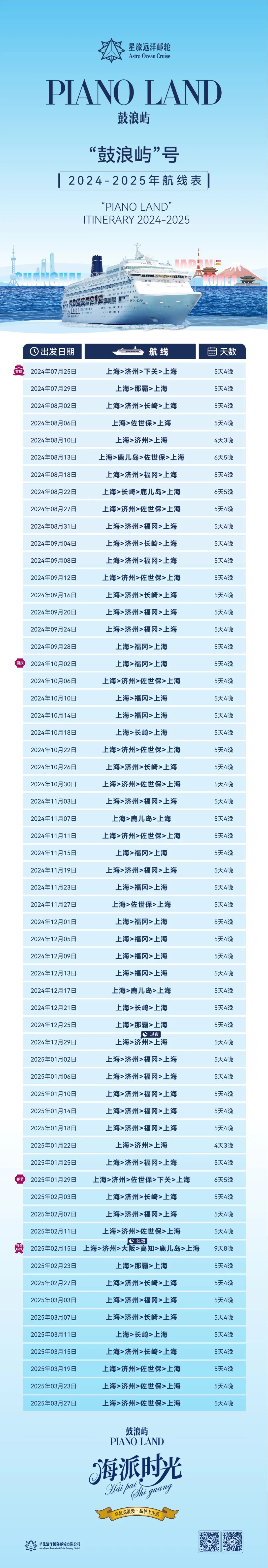 热烈关注!吴淞口国际邮轮港“暑期母港航线”最新航线表现隆重发布,为暑期海上之旅拉开精彩序幕。