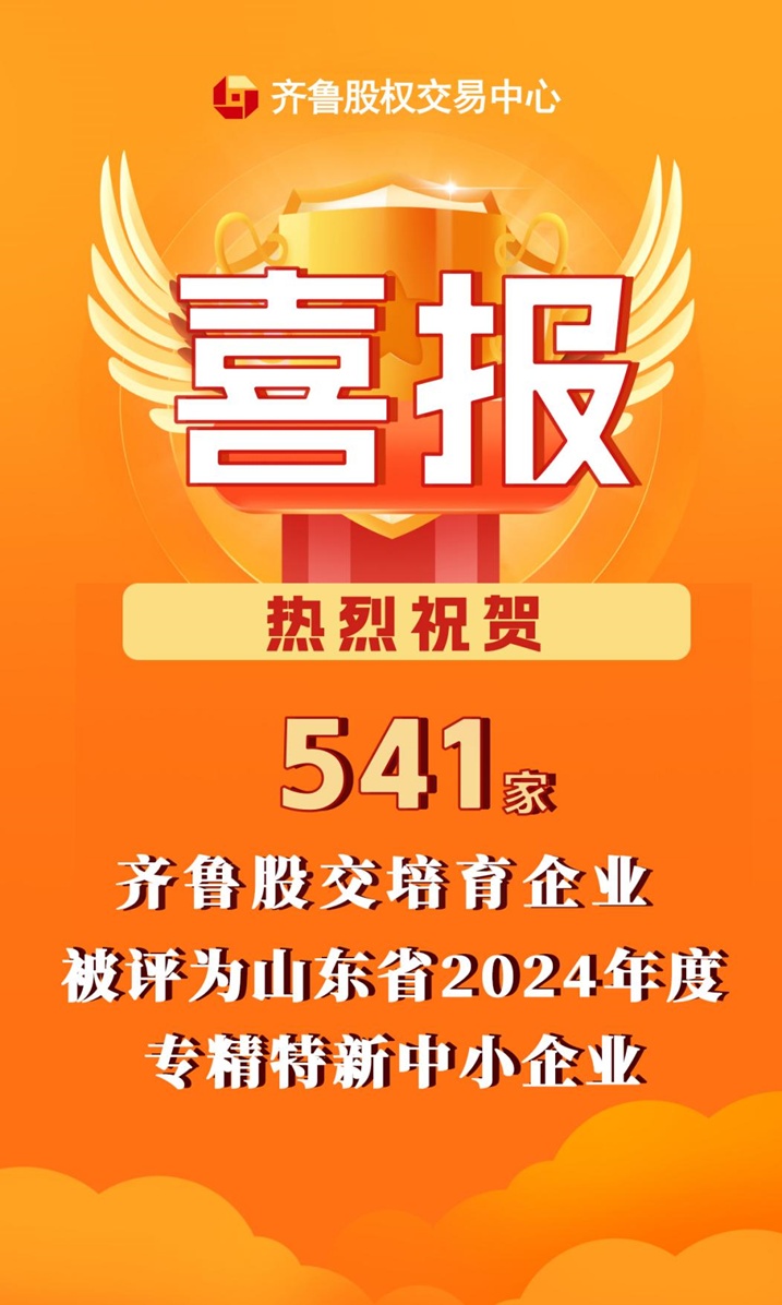 近日,山东省工业和信息化厅公布了2024年度“专精特新”中小企业名单,541家齐鲁股交培育企业入选。